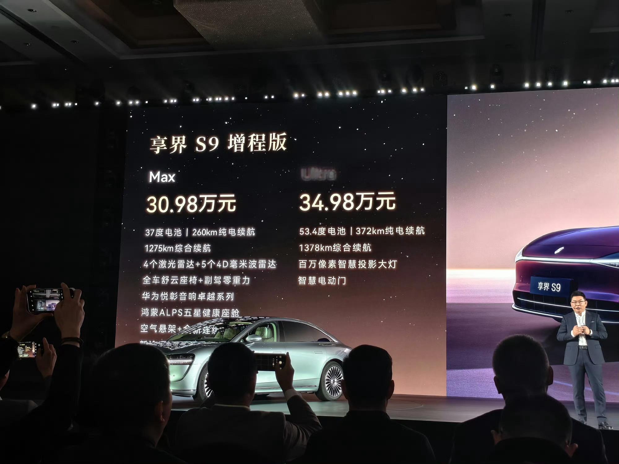 享界S9第二次发布了增程版 Max 30.98 万;Ultra 版 34.98 万纯电版 Max 32.98 万;Ultra 版 36.98 万元这次没有“飞坡”事件,销量能翻身吗?