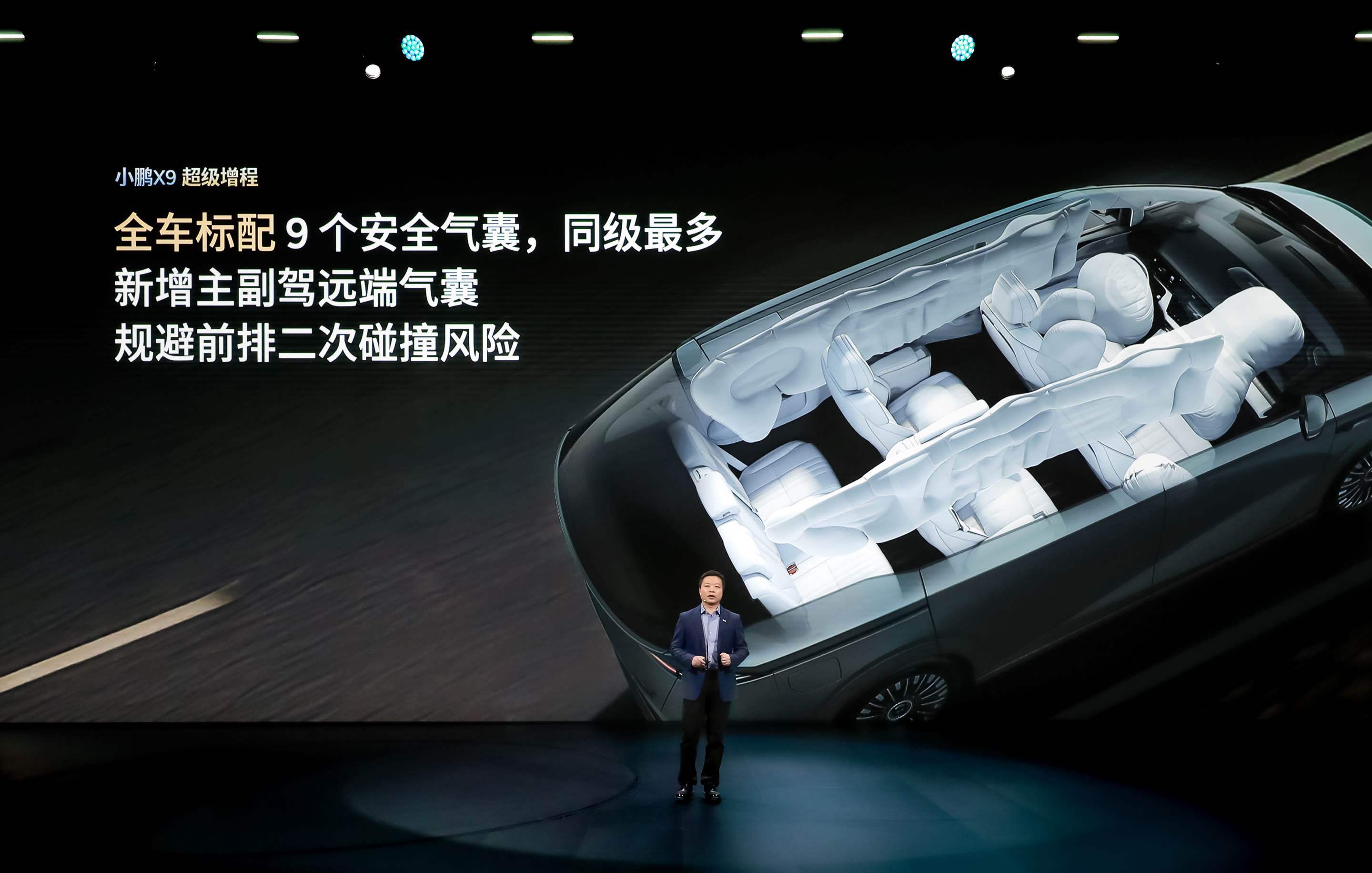 纯电起家的小鹏做增程显然有自己独有的理解,直接就是大电池方案,综合续航也直接来到1600多公里。同时小鹏X9对安全的重视也做到极致,安全气囊给的足足的。配合高强度车身,安全性可以说拉满了~