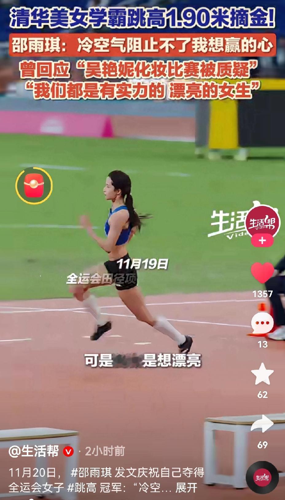 运动员能否大🔥,是一种奇妙的玄学[思考]“清华学霸”邵雨琪,凭借“夺冠+颜值”出圈,还有一个重要原因就是——刚好女子跳高决赛转播就在女子100米栏决赛前面[6]所以,邵同学“投桃报李”,公开为吴艳妮打cue[灵光一闪]
