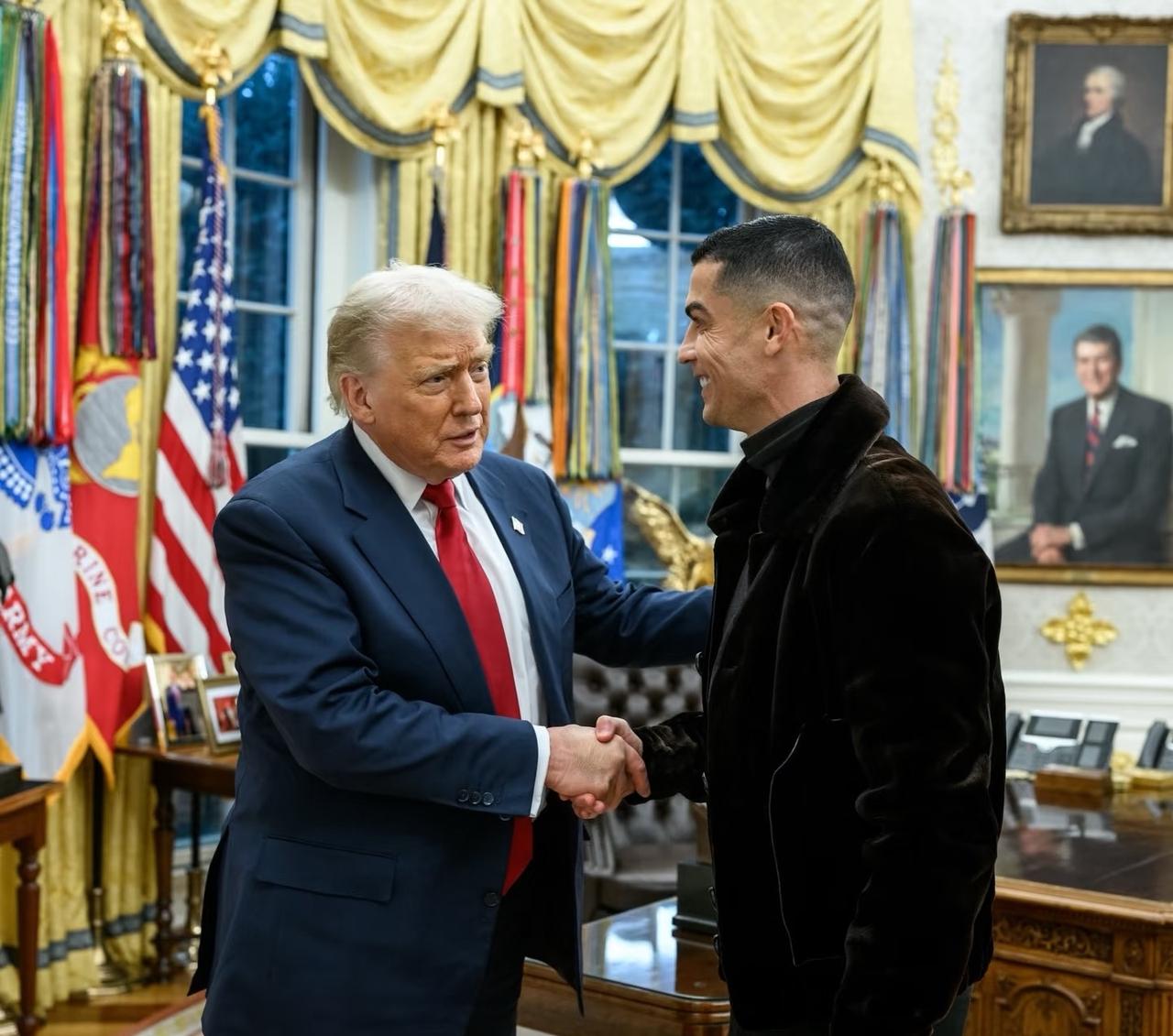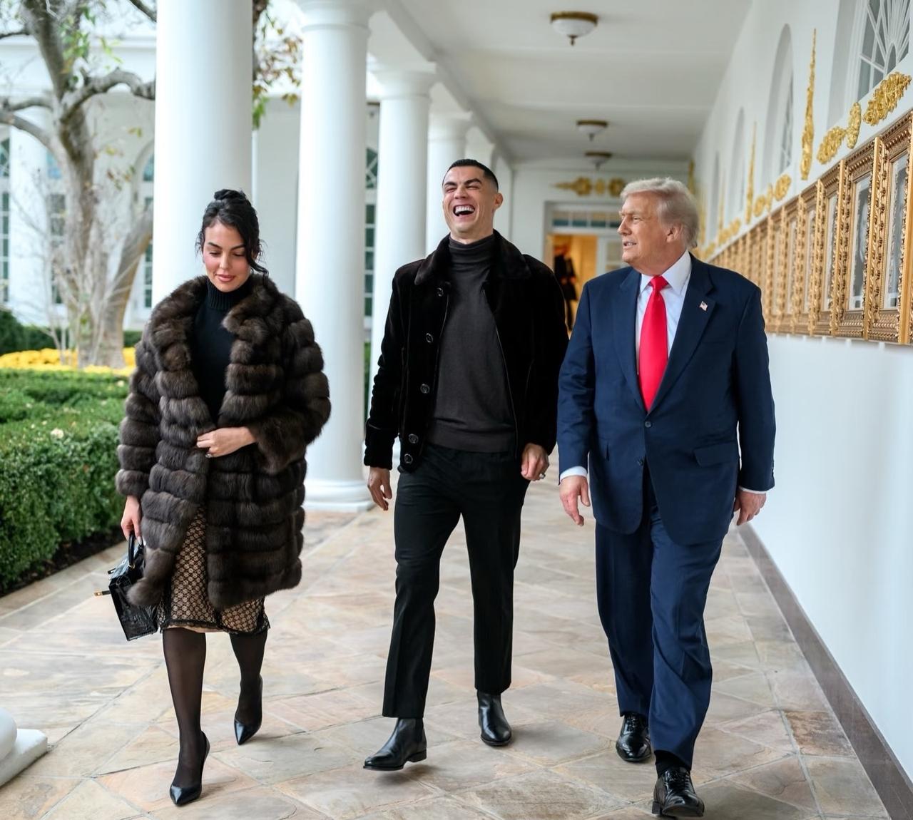 足以载入史册的照片,C罗夫妇与特朗普合影。 现在特朗普身高也就183左右了吧,C罗186还穿增高鞋,C罗186的身高应该没有水分吧!不明白这么高为什么还穿增高鞋,就为了比特朗普还高?