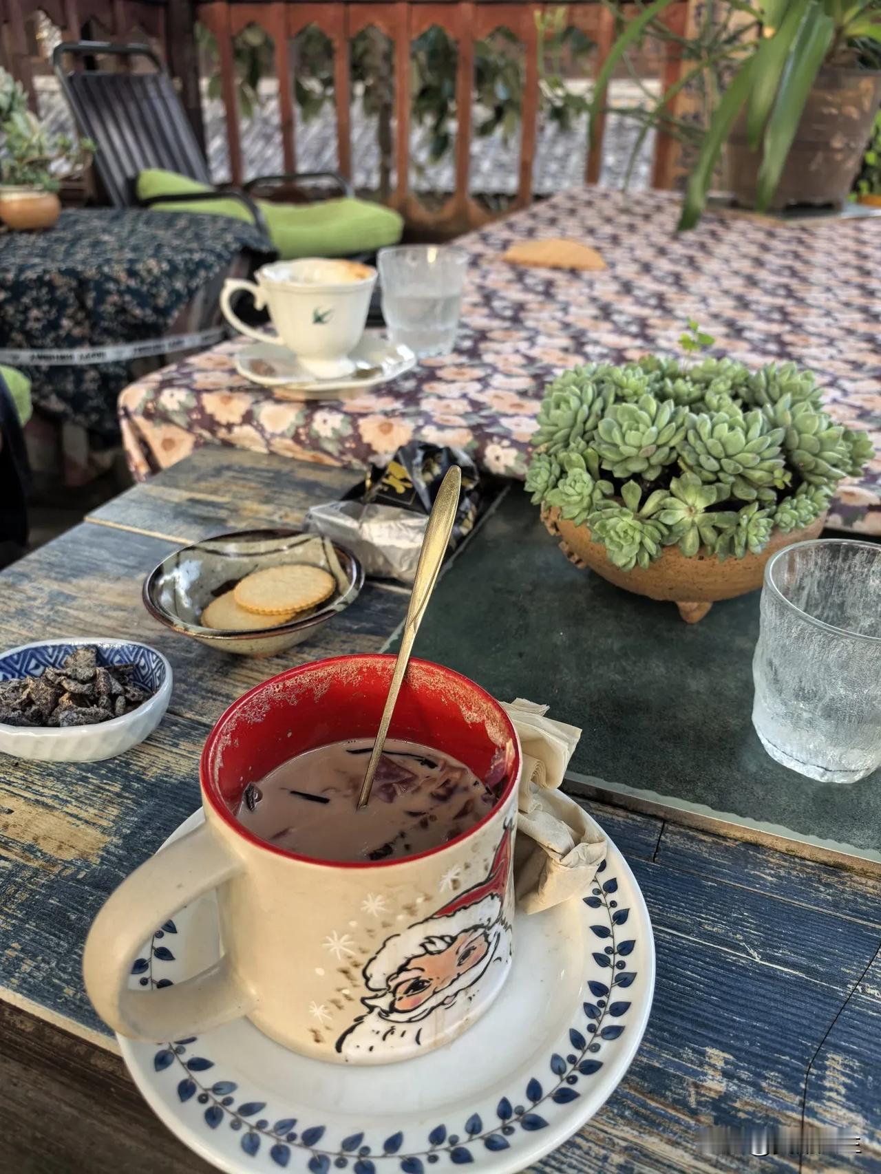 雨中漫步,撑伞漫步在咖啡馆外的浪漫时光。