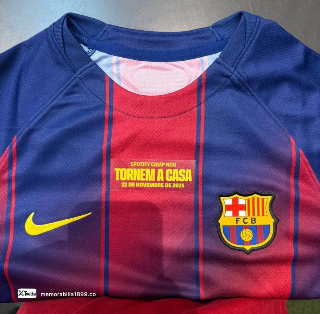 我们回家了❤️💙巴塞罗那将身穿带有特殊纪念字样的主场球衣,胸前写着“TORNEM A CASA”(我们回家了),以此庆祝巴萨重返Spotify诺坎普球场比赛。🏟️😭