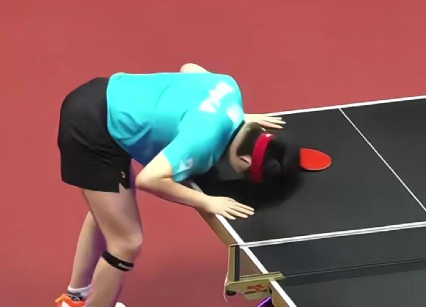 哈哈,全运会的球桌真是太“憋屈”, 昨天莎莎跟它吵了一架, 今天大头又使劲用头砸