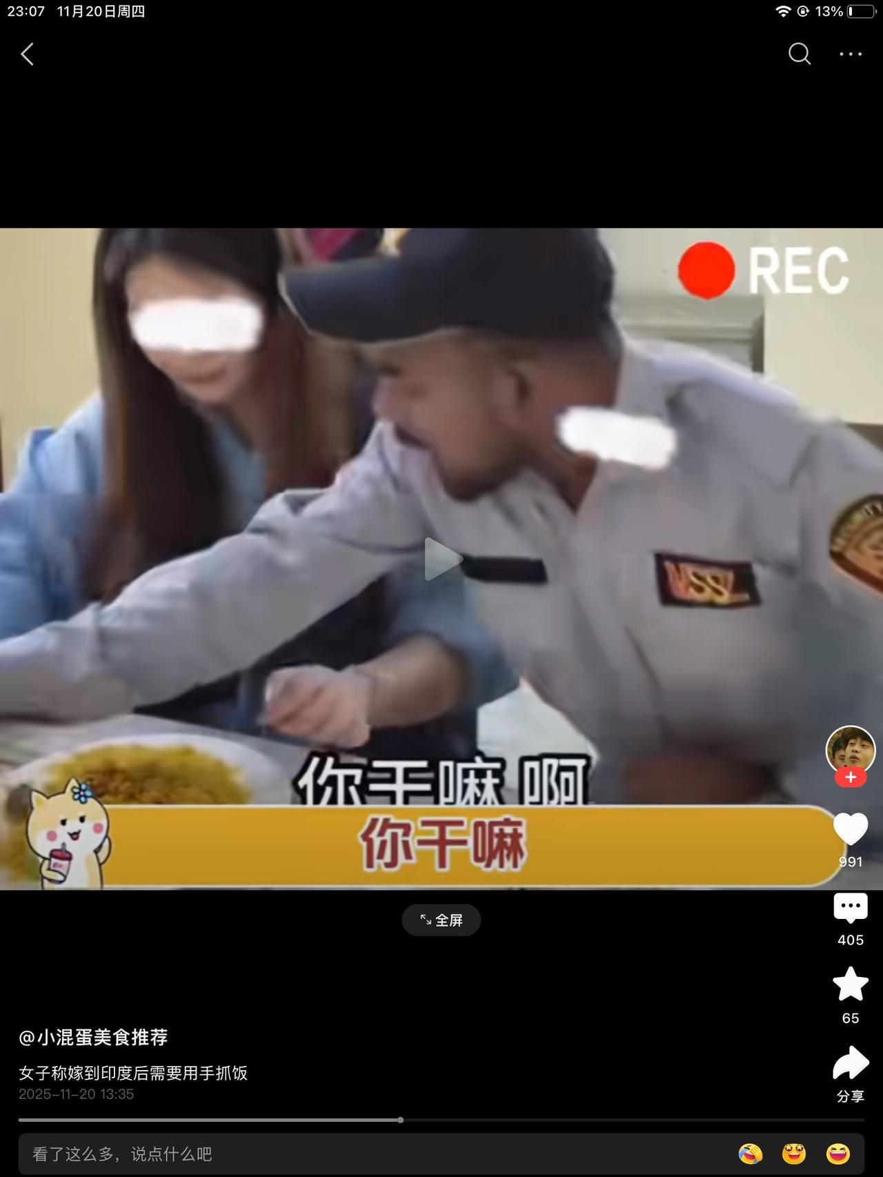 嫁鸡随鸡嫁狗随狗具象化了。一女子嫁往印度,吃饭时,老公要求她,用手吃饭,不能用筷子。很严肃的打掉他的筷子。并告诉她,这是印度。 哎呦,其实也没毛病对吧,人是自己选的,入乡随俗么。用手抓饭,有什么问题呢?尊重人家的习惯。但愿这种,就不要回来了。彻底习惯就好了。
