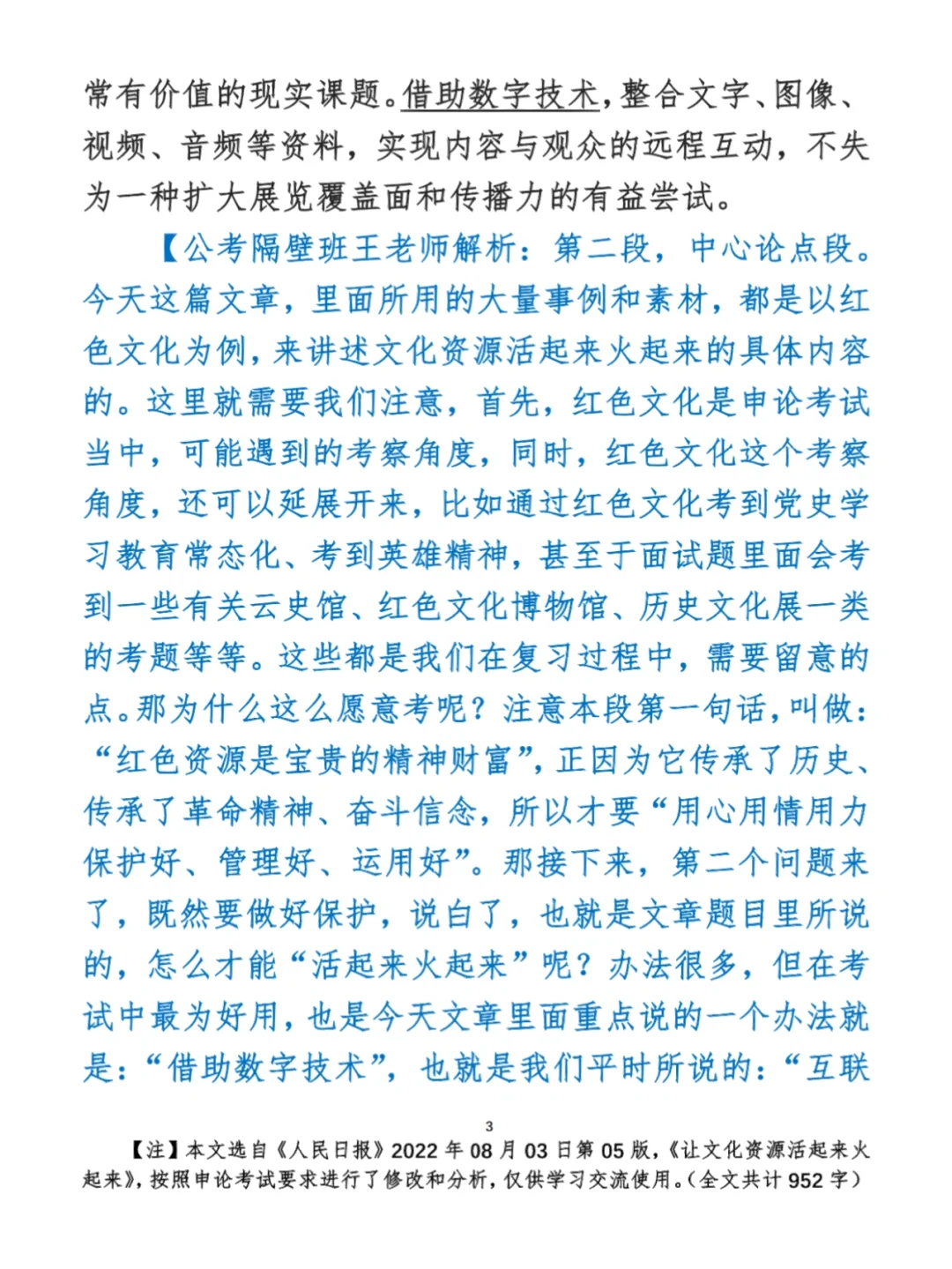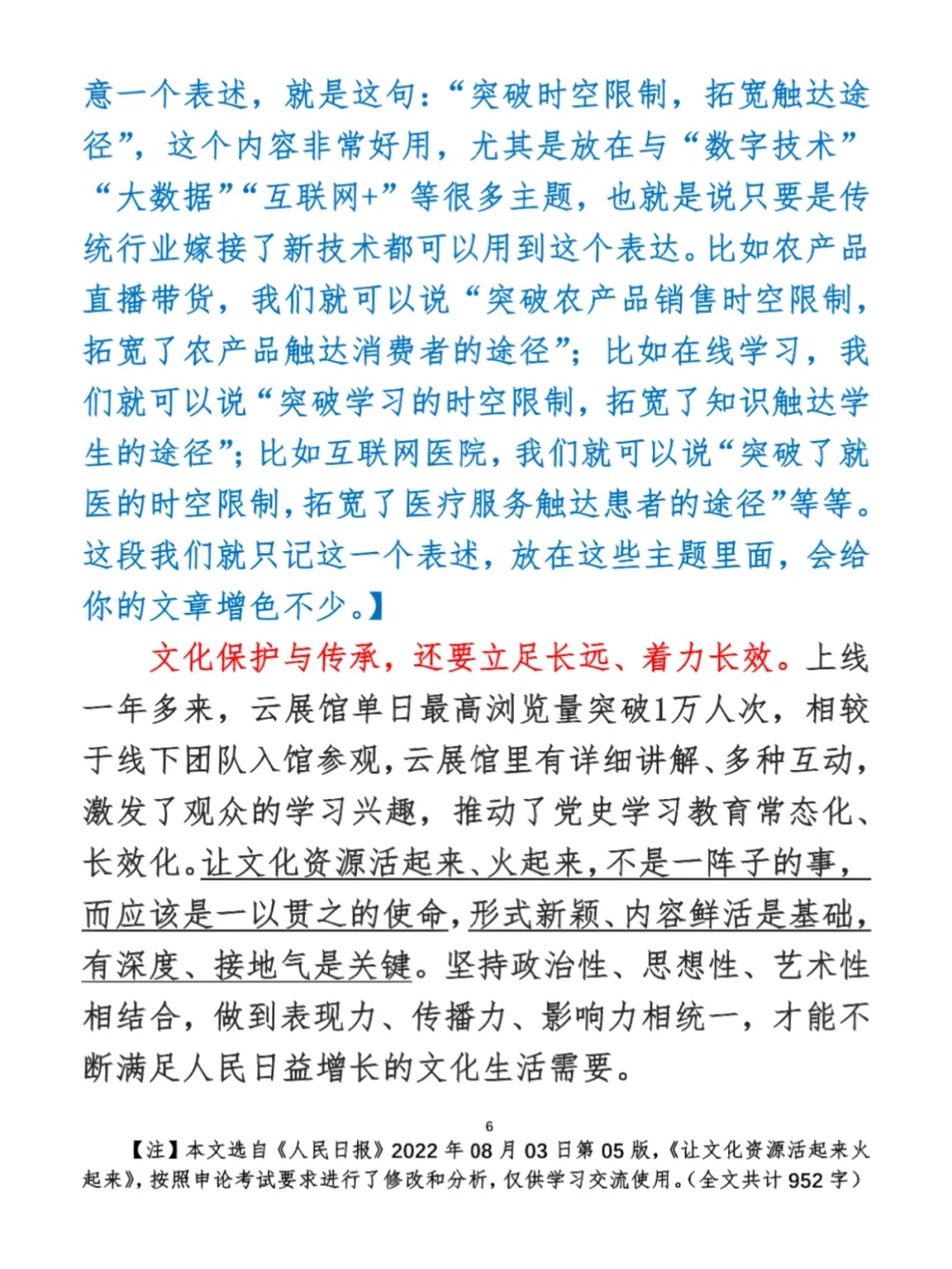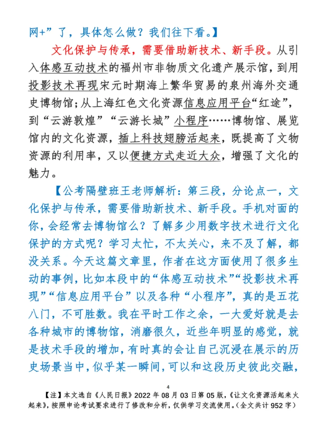 今日打卡作业: 1. 选一句你最喜欢的金句 2. 抄写全文红字+划线部分内容 3. 写完后在留言区打卡 ⭐️ ⭐️ ⭐️ ⭐️ ⭐️ ⭐️ 如何抄写:每天的抄写文章以图片形式发在“公考隔壁班王老师”账号,红色字是重点句和结构句,黑色字是正文,蓝色字是解析,大家抄写时不必抄蓝色字。建议先通读全文(包括蓝色解析部分),做到心中有数再开始抄写,效果会更好。 关于文章:抄写文章来源于人民日报,但每篇文章我都根据申论考试要求进行了修改,主要集中在四个方面:一是重写或修改开头、结尾;二是统一段首句句式结构;三是调整段落字数,使文章结构更均衡;四是简化复杂长难句,使之更具可模仿性。每篇文章修改幅度不同,无论修改多少,都是基于申论考试要求,毫无对人民日报文章品评之意。(此处致敬人民日报) 关于解析:我会在文章每段后面加一段蓝色字的解析,是我自己在抄写时的感悟,篇幅时间有限,不能面面俱到,但求重点突出。如果你有其他感悟,也希望能在评论里分享,我们相互学习、共同进步。 ⭐️ ⭐️ ⭐️ ⭐️ ⭐️ ⭐️ 这里是公考隔壁班王老师独创的“每天半小时・申论80分”抄写团,欢迎加入我们!