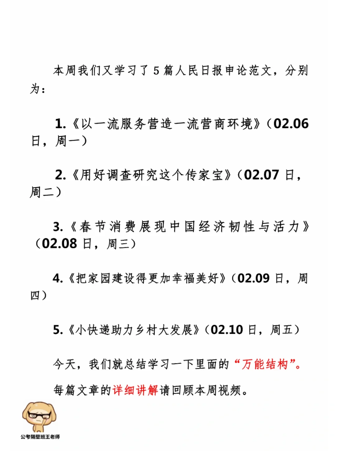 本周我们又学习了5篇人民日报申论范文,分别为:
