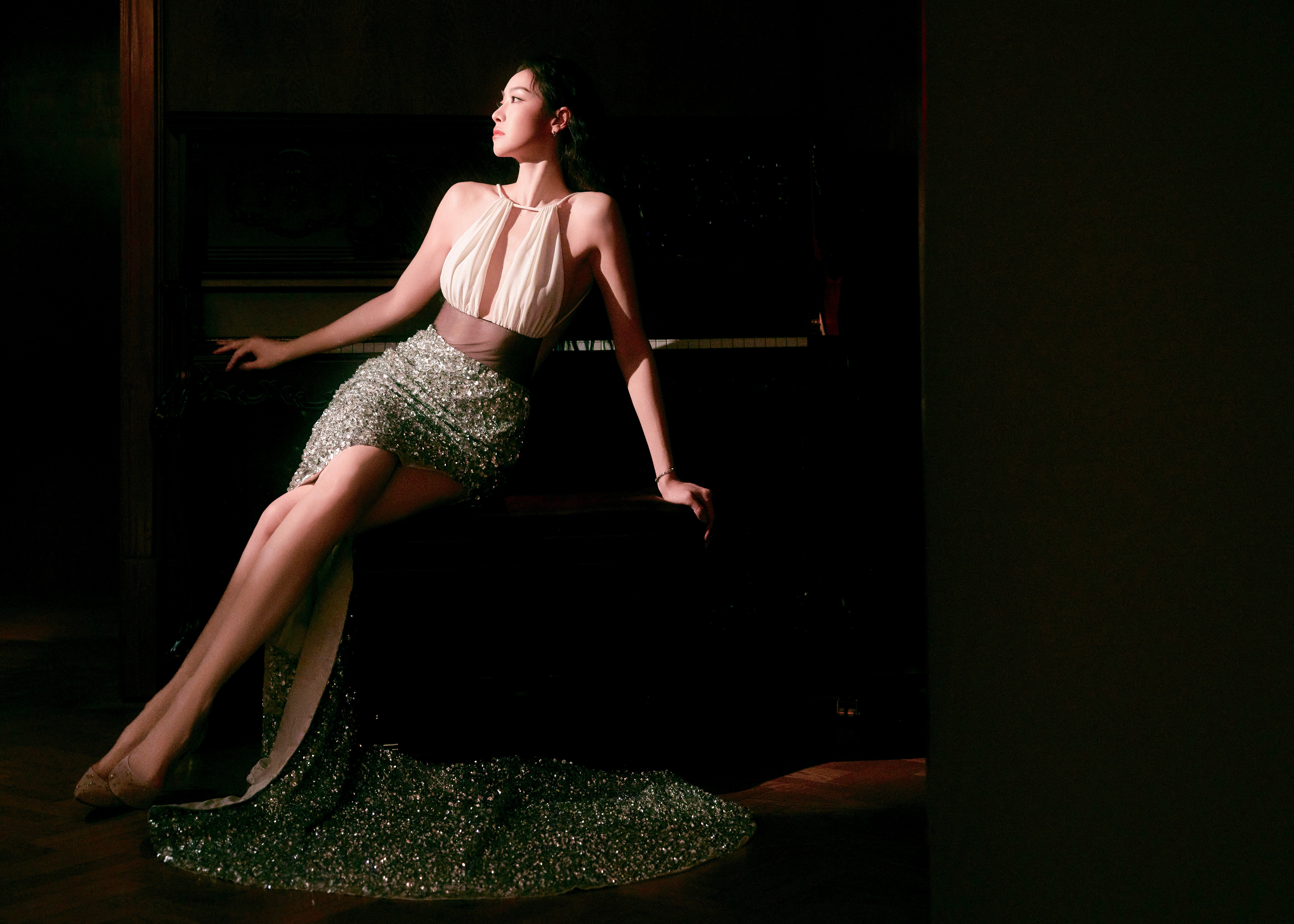 杨超越 裸足蜷出软绵的弧度,长腿漫开的线条,比缎裙更勾人眼。