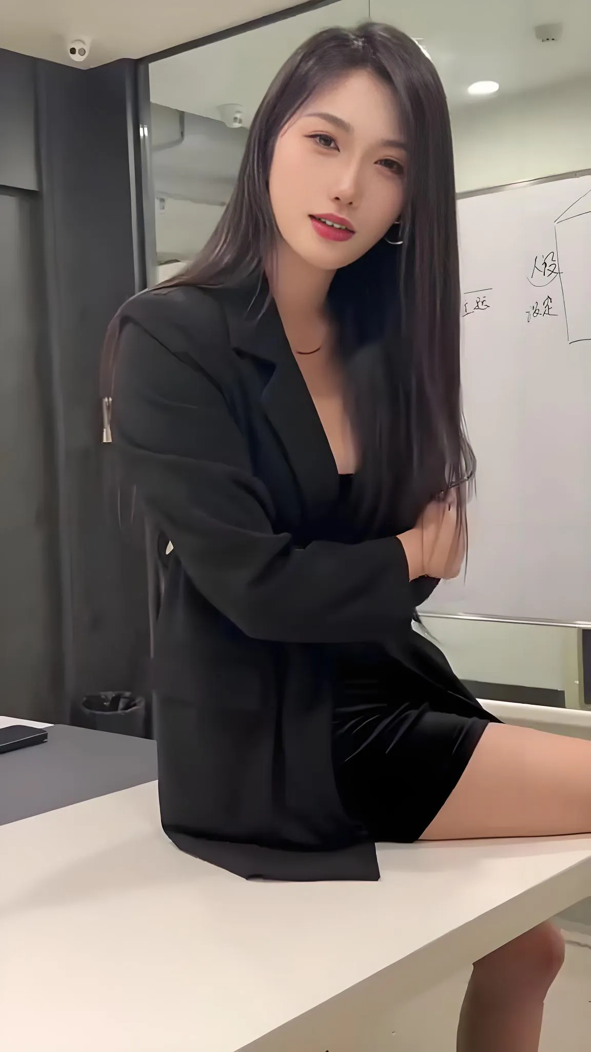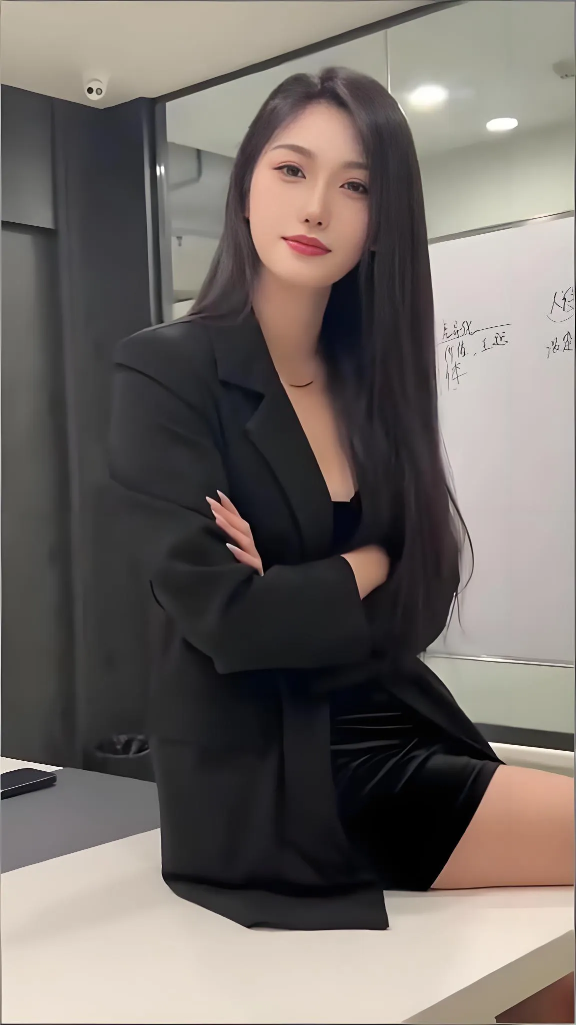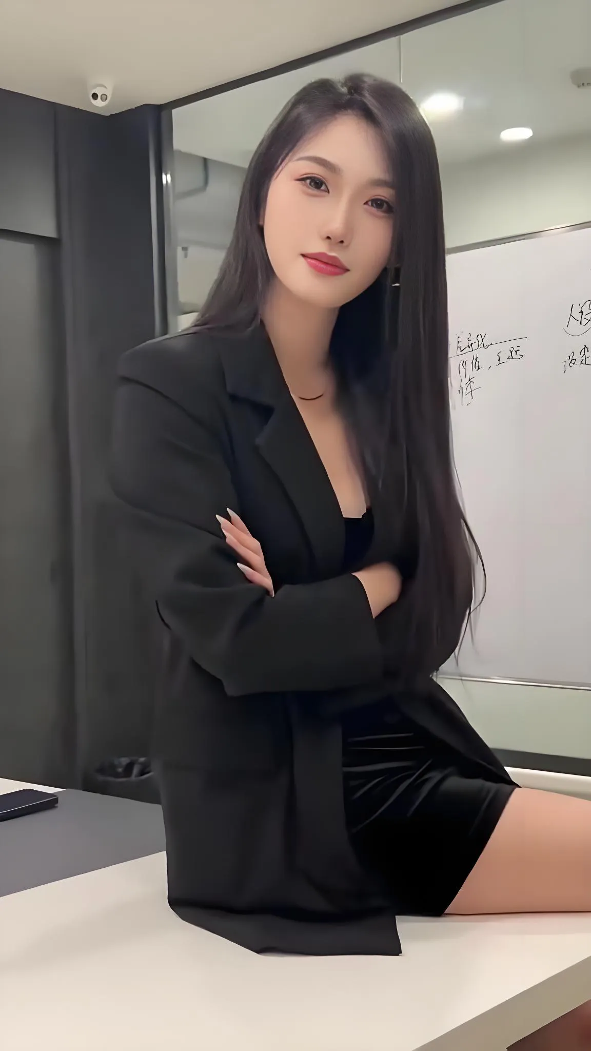 这位穿着黑色西装坐在办公桌前的小姐姐,瞬间让我联想到职场上那些雷厉风行...