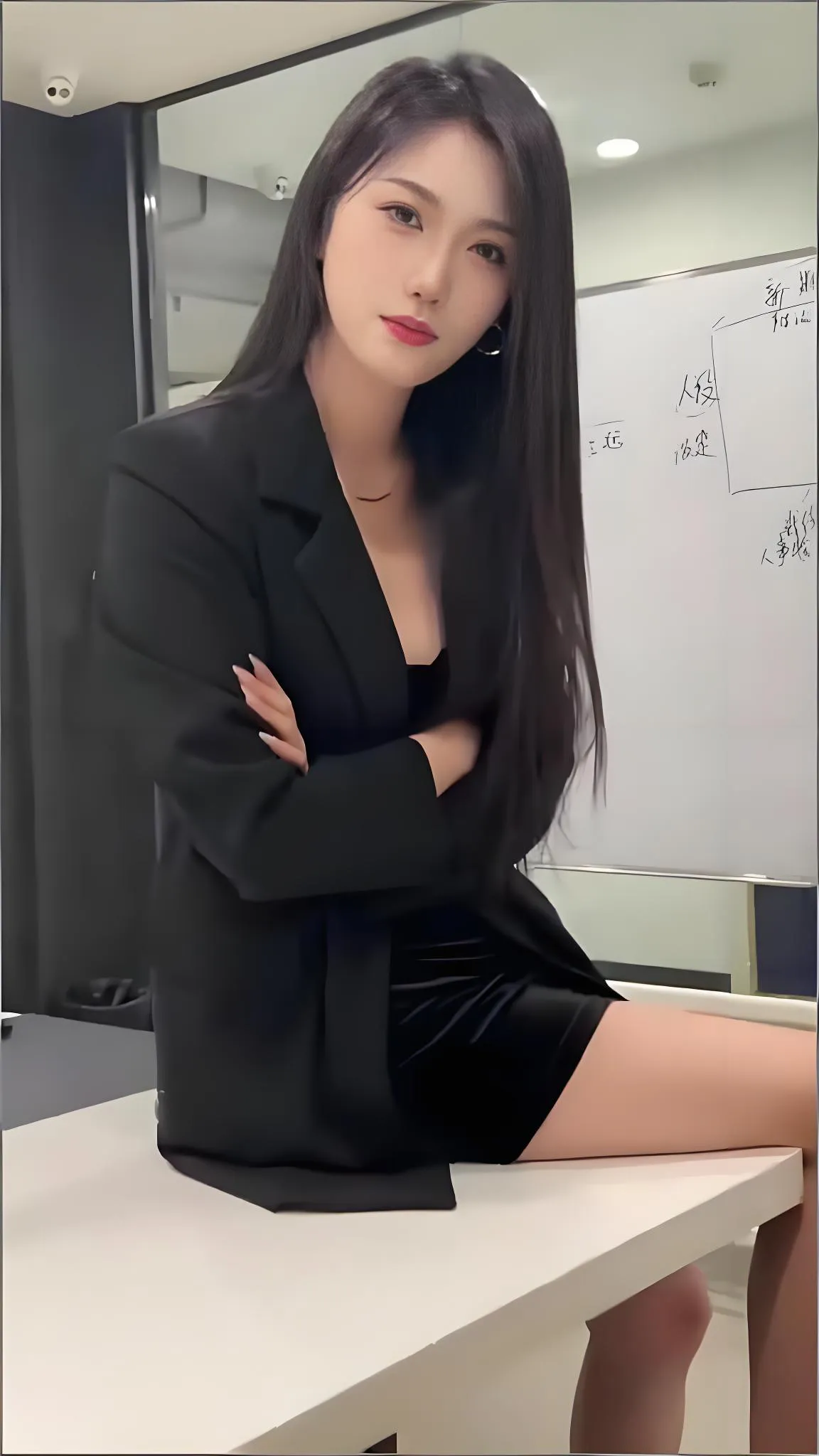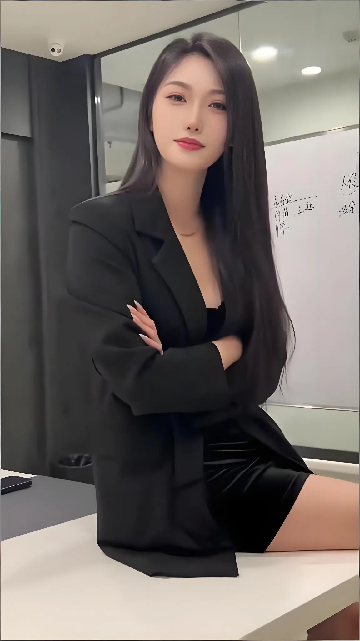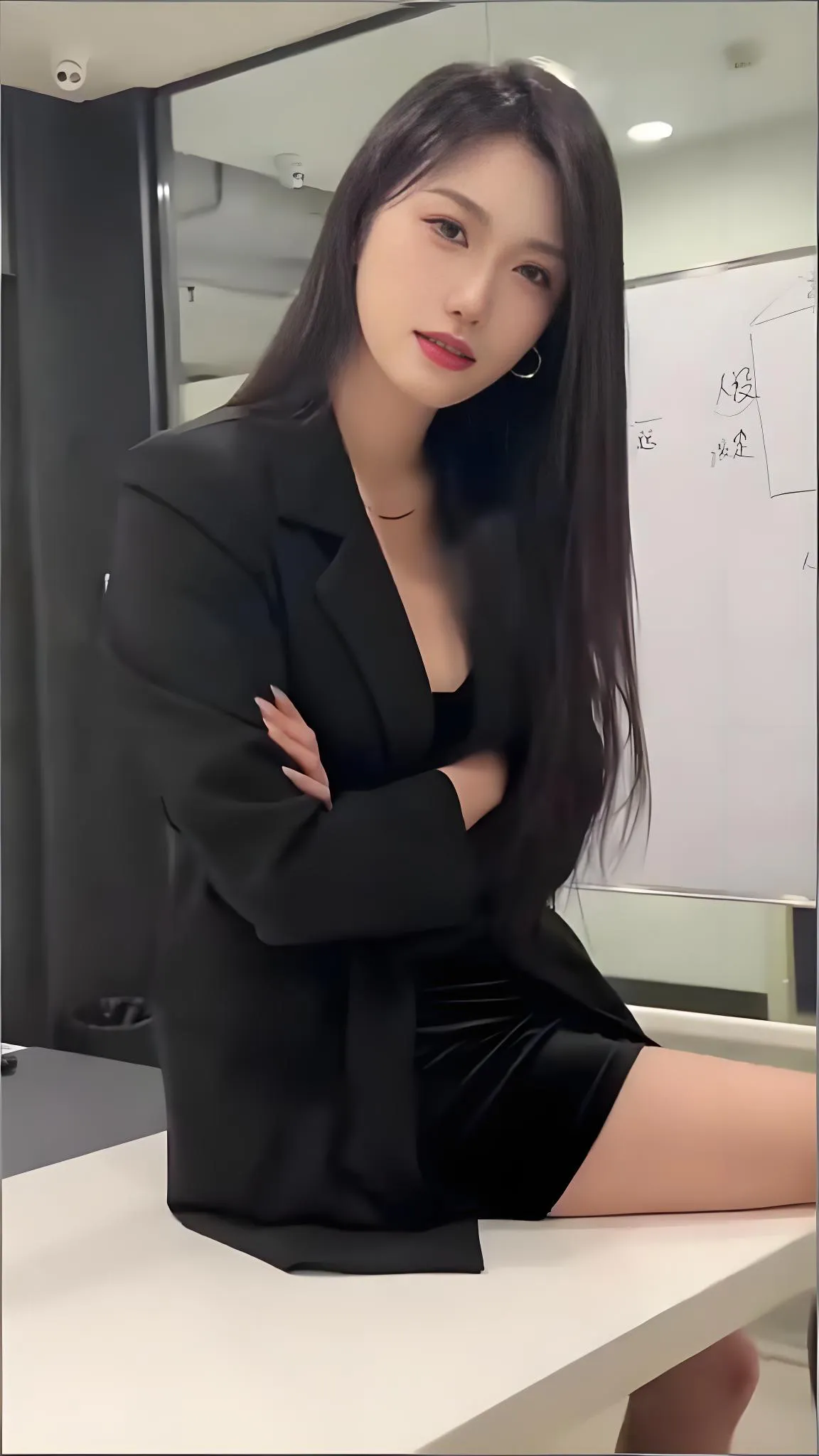 这位穿着黑色西装坐在办公桌前的小姐姐,瞬间让我联想到职场上那些雷厉风行...