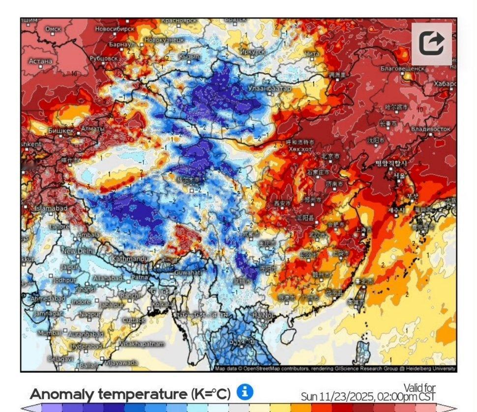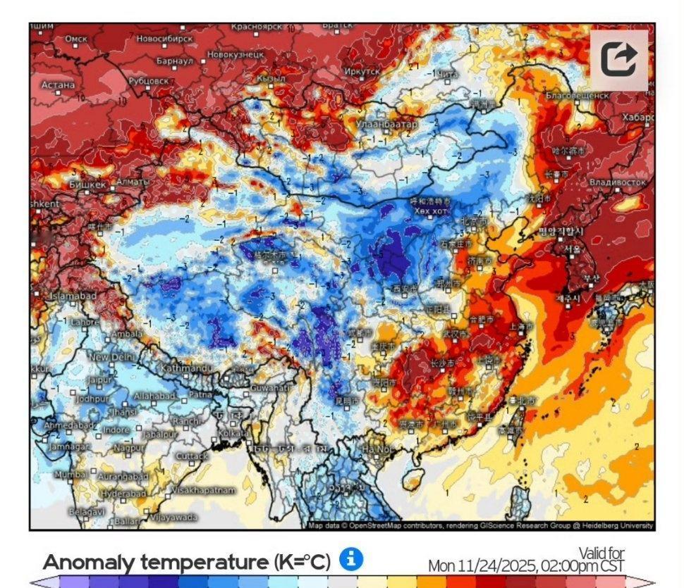 关注沈阳下周三(26日)夜间到下周四(27日)白天的“中雨夹雪或大到暴雪”的天气