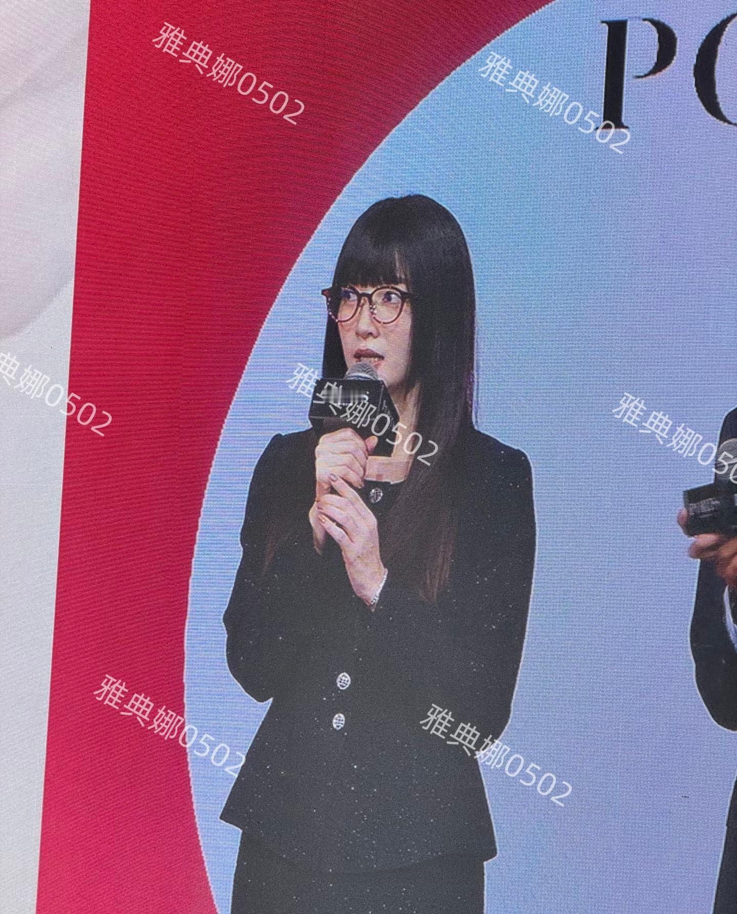 她平时给人的形象,是那种又白又瘦打扮洋气状态特别文艺松弛的气质型美女,干练知性的职业白领形象深入人心 ,但今天她这身黑色套装配圆框眼镜的造型确实太过古板了,不知道她是不是戴了假发?这个厚重的刘海儿不仅没有凸显她精巧的脸型, 反而让她看起来还老了几岁,很像那种女主为了隐藏美貌故意打扮的很平庸华丽变身之前的装扮。