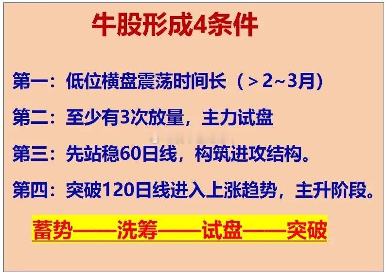 横多长竖亦有多高,主升行情除了放量,通常还需3个核心条件!主力的运行路径有4个,分别为:蓄势——洗筹——试盘——突破;我们常见的强势股,其共性是放量突破,有资金不断入场抢筹,这是明显上特征,谁都能看得到,关键在于启动初期,却很少有人能快速识别,所以前面3个条件就很重要。前期下跌后的蓄势,然后是洗筹,再向上试盘,测试压力重不重,直到把完成这些动作,向上突破就一路起飞,值得收藏!