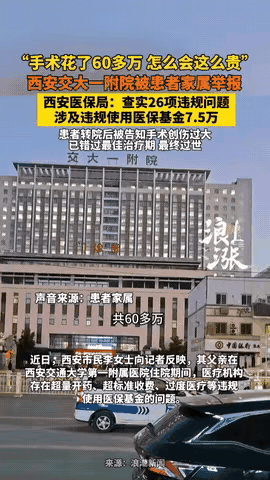 西安,一女子父亲头晕,去医院治疗,不料手术后其父亲陷入昏迷进了ICU,女子不相信医院,决定转院,转院时竟被 告知医药费用要60多万,医保报了不到30万,家属支付了30多万,可转院后,其父亲却因手术创伤过大错过最佳治疗期,没救回来,最终因病情过重离世! 人财两空已经够让人崩溃了,可翻看收费清单时,女子发现的问题更让人愤怒。28万的自费心脏瓣膜,家属压根没签字同意。 父亲明明是男性,清单里却赫然出现“会阴清洗”的费用;纱布近6000元,缝合胶5700元,林林总总筛出40多项违规,光违规费用就疑似有十几万。 后来医保局核查,确认医院26项违规,涉及医保基金7.5万元。这数字背后,是普通人被掏空的家底,是失去亲人的痛苦,更是对“医者仁心”的践踏。 总有人说房子车子是压在普通人身上的大山,可我觉得,医疗才是最让人绝望的后顾之忧。 一场病、一台手术,就能轻易把一个家庭几十年的积蓄清零,甚至背上外债。医院本该是救命的地方。 可有些机构却把这里当成了敛财的工具,用违规收费、过度医疗消耗着患者的信任。 更可怕的是,这种情况可能不是个例。多少人看病时看不懂收费清单,只能被动缴费;多少人因为怕得罪医生,就算有疑问也不敢多问。 我们尊重医护人员的辛苦,但绝不容忍利用患者的信任谋利的行为。 医保基金是老百姓的“救命钱”,每一分都该用在刀刃上。对于这种骗取医保、违规收费的医院,必须零容忍,严肃追责!否则,寒的是无数普通人的心。 你身边有没有遇到过类似的医疗乱象?如果是你,会怎么维权?