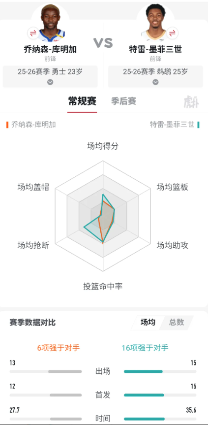 理性分析勇士该不该用库明加去交易墨菲 理性分析一下,关于勇士是否应该交易库明加换取鹈鹕的特雷·墨菲,这确实是个能点燃球迷争论的话题。毕竟,看着勇士目前9胜8负排在西部第八的战绩,以及进攻效率仅位列联盟第23的挣扎,改变似乎是必要的。 单论纸面实力,墨菲看起来像是为勇士定制的解药。他上赛季场均能砍下21.2分5.1篮板3.5助攻,三分命中率也有36.1%。这手稳定的外围火力,正是目前这支勇士所渴求的。想想看,当库里和巴特勒吸引防守注意力后,墨菲站在三分线外带来的空间价值,是库明加目前无法提供的。更重要的是,墨菲被普遍认为是联盟稀缺的优质3D侧翼,他的到来能立刻提升勇士锋线的防守硬度与高度。勇士本赛季的防守效率(联盟第7)其实不差,但输给的对手多是拥有高大锋线和内线的球队,墨菲2米03的身高和2米16的臂展正好能应对这个问题。 支持库明加的一方会认为,放弃他无异于透支勇士的未来。库明加年满23岁,他上赛季已经是队内第三得分手,并且在某些系列赛(比如对阵森林狼时库里缺阵的场次)中证明了自己是队内除巴特勒外,唯一可靠的硬解点,曾在系列赛有过场均24.3分、命中率55%的表现。他的持球攻击能力和造犯规本事(场均36分钟能博得7次以上罚球)是墨菲不具备的。用这样一位天花板可能更高的年轻资产,去换取一个功能可能更偏向“极品拼图”的球员,风险极大。更何况,为了匹配墨菲的薪资,勇士可能还得搭上穆迪这样的年轻筹码以及选秀权,这会让球队本就单薄的年轻核心层更加脆弱。 从球队化学反应来看,交易库明加或许能解决“不适配”的老问题。库明加与勇士的传切体系一直存在兼容性问题,这也是科尔教练在某些关键时段宁愿把他放在板凳上的原因。墨菲的无球打法和投射能力,理论上能让他更丝滑地融入勇士体系,而且他待在鹈鹕这种队简直是浪费生命,他与库里、格林产生更好的联动。而且他才25岁,同样是新鲜血液,可以抗大旗。但反过来想,送走库明加会不会激化“勇士只会啃老”的批评? 本赛季勇士多次出现库里、巴特勒等老将砍下高分却输球的局面,角色球员贡献不足的问题显著。如果在这个时候选择交易潜力新星,会不会被看作是对培养年轻人失去耐心,进一步陷入依赖老将的恶性循环? 所以,这笔交易的争论核心在于:勇士是应该押宝一个已经成型、能立刻提升即战力的“高级零件”墨菲,还是继续投资于库明加那充满不确定性但可能回报更高的原始天赋? 个人认为如此做利大于弊