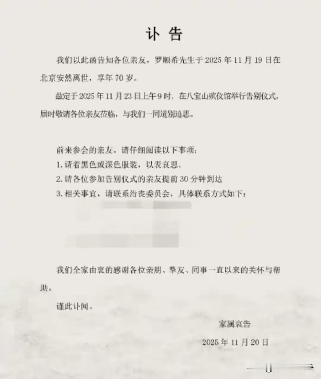 11月20报道关于罗晋唐嫣离婚的消息闹得是沸沸扬扬,罗晋家却突然传来噩耗,原来他们没有回应传闻,可能是被这件事给绊住了啊。[黑线] 罗晋的父亲罗顺希已于11月19日因病离世,享年七十岁,这一消息也解释了罗晋夫妇近期为何减少公开活动,使之前围绕他们感情的种种猜测暂时搁置。 罗晋与家人目前正全心处理父亲后事,处于悲痛之中,罗晋在过去一年确实大幅减少了影视工作,推测其重心放在了陪伴与照料生病的父亲上,父子合影里罗父神情慈祥,他的离世也让不少关注他们的人感到突然与惋惜。 随着罗父去世的消息被证实,舆论风向迅速转变,不少声音指出,在家庭遭遇重大丧亲之痛的关头,继续讨论当事人的私人感情状况既不恰当,也缺乏基本尊重,罗晋与唐嫣此时显然更需要空间与安宁,而非对外回应不实传闻。 罗晋与唐嫣自公开恋情到组建家庭,长期被公众视为幸福伴侣的代表,此前,夫妻二人近期互动减少,工作安排等表象,推测感情生变,随着罗晋家事的公布,其家庭正忙于处理丧事。 不传谣不信谣,尊重所有人。 “看到这个消息第一反应是心疼罗晋,至亲离世是最大的痛,这个时候还被传婚变,真是雪上加霜,希望他能节哀,好好处理家事。” “人家家里出了这么大的事,之前那些嚼舌根说人家离婚的现在可以闭嘴了吧,将心比心,谁还有心情出来回应这些无聊传闻。” “所以说,吃瓜真的要谨慎,现在一看,之前那些‘爆料’什么同框少,没商业关联,都太站不住脚了,人家可能只是想把工作和生活分开,低调过日子而已。” “这事件就是个很好的例子,告诉我们对于明星的私事,尤其是这种没实锤的传闻,让子弹飞一会儿是对的,不然很容易被打脸,更可能伤害到当事人。” “其实就算没有父亲去世这件事,我觉得夫妻俩减少同框,各自搞事业也很正常啊,日子是过给自己的,不是过给网友看的,非得天天秀恩爱才叫感情好吗,那种‘综艺恩爱’反而让人觉得不真实。” 如何看待网络上的明星婚变传闻?在类似事件中,我们作为观众应如何把握关注尺度? 信源:现代快报