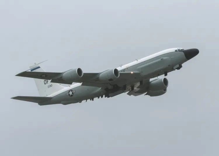 美国《新闻周刊》的一张地图追踪了一架美国空军RC-135W侦察机周四(20日)飞赴中国海南岛附近海域的轨迹,中国在海南岛部署了两艘航空母舰。