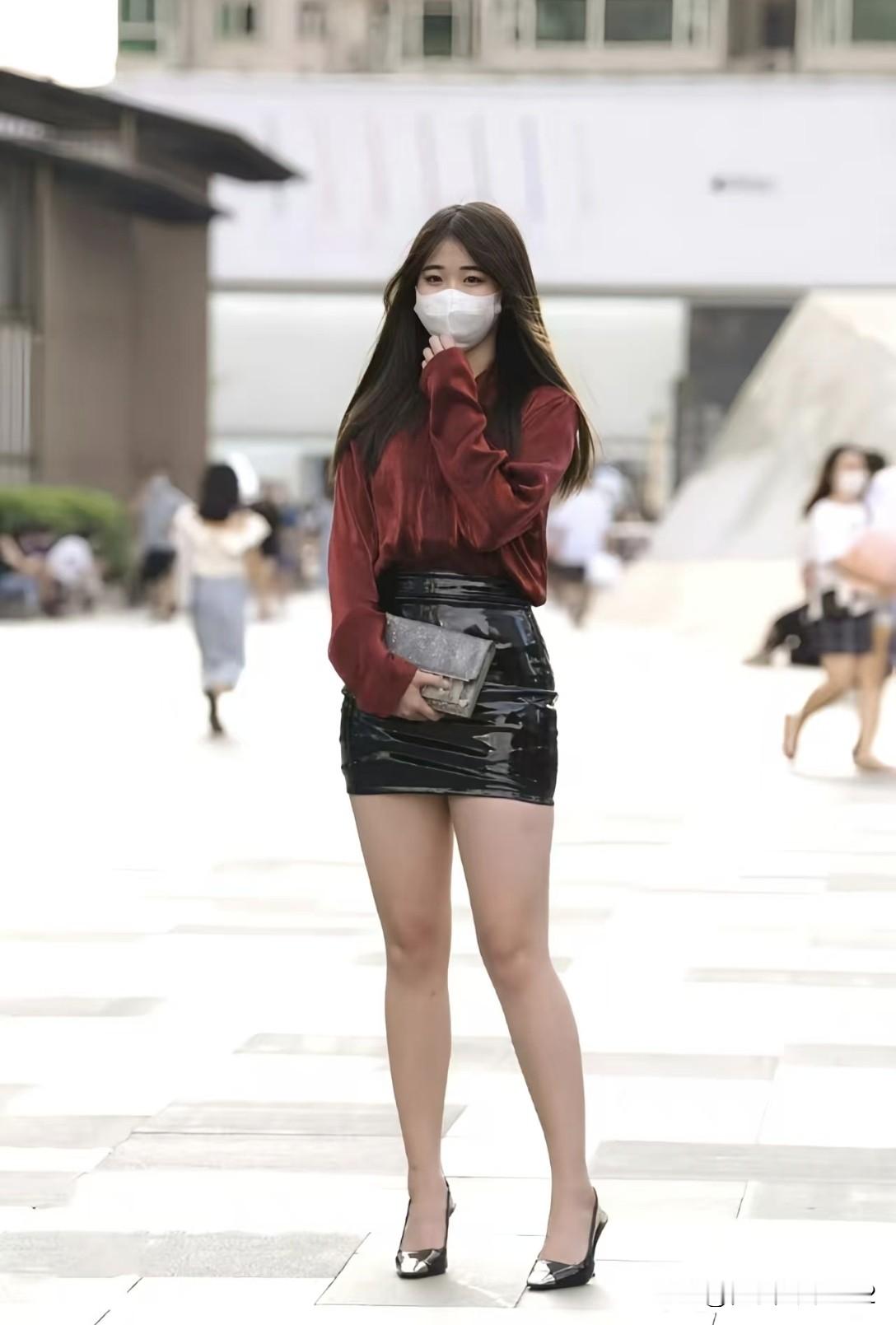 都市时尚女孩,红衣黑裙,自信步伐