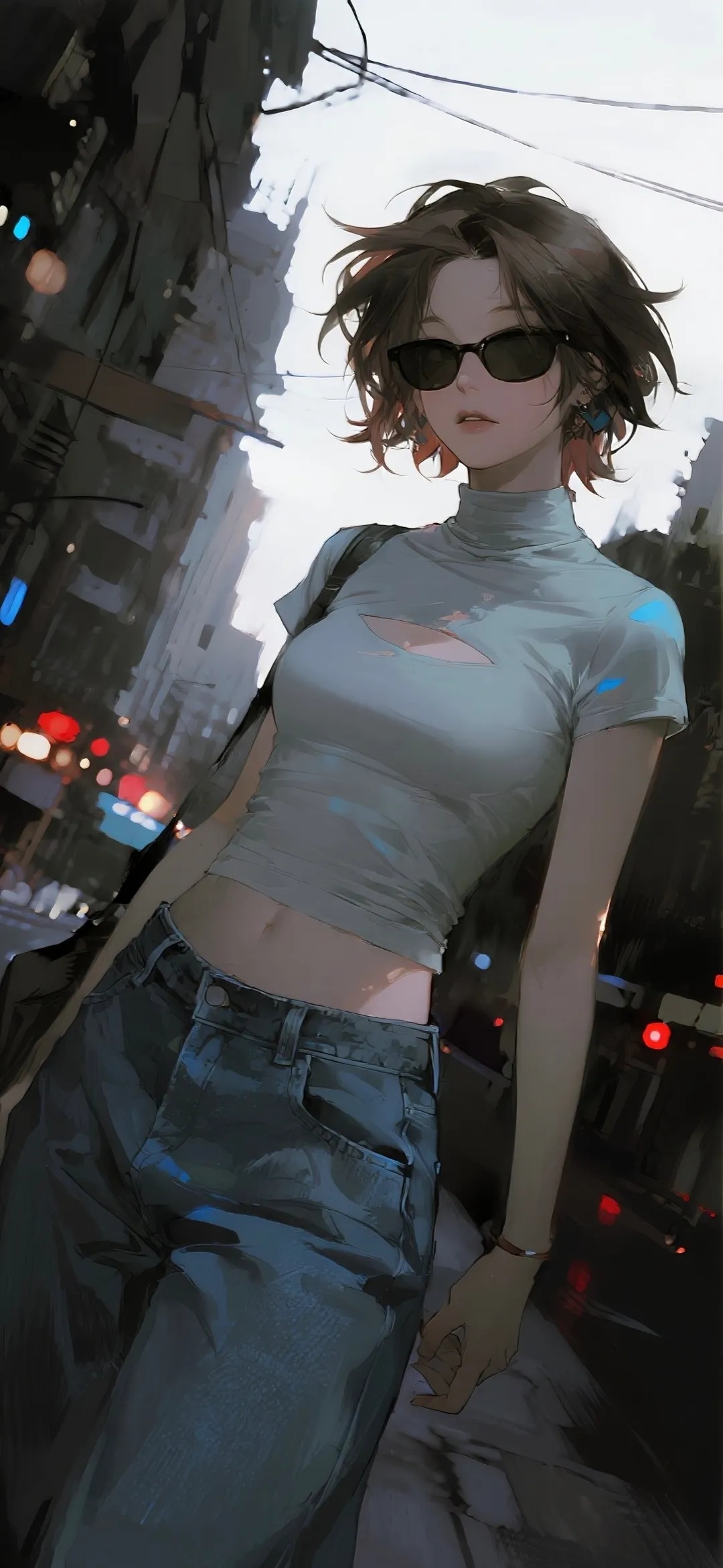 城市天际线下的甜美少女,微笑如阳光般灿烂。