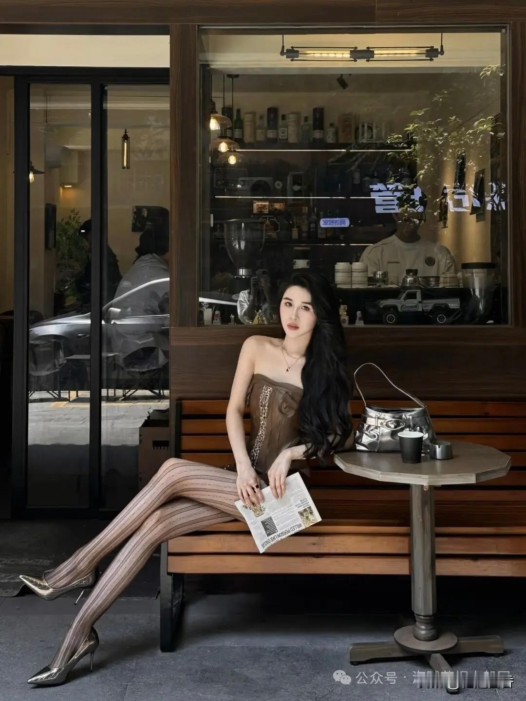 复古咖啡馆里的时尚少女,享受悠闲时光。