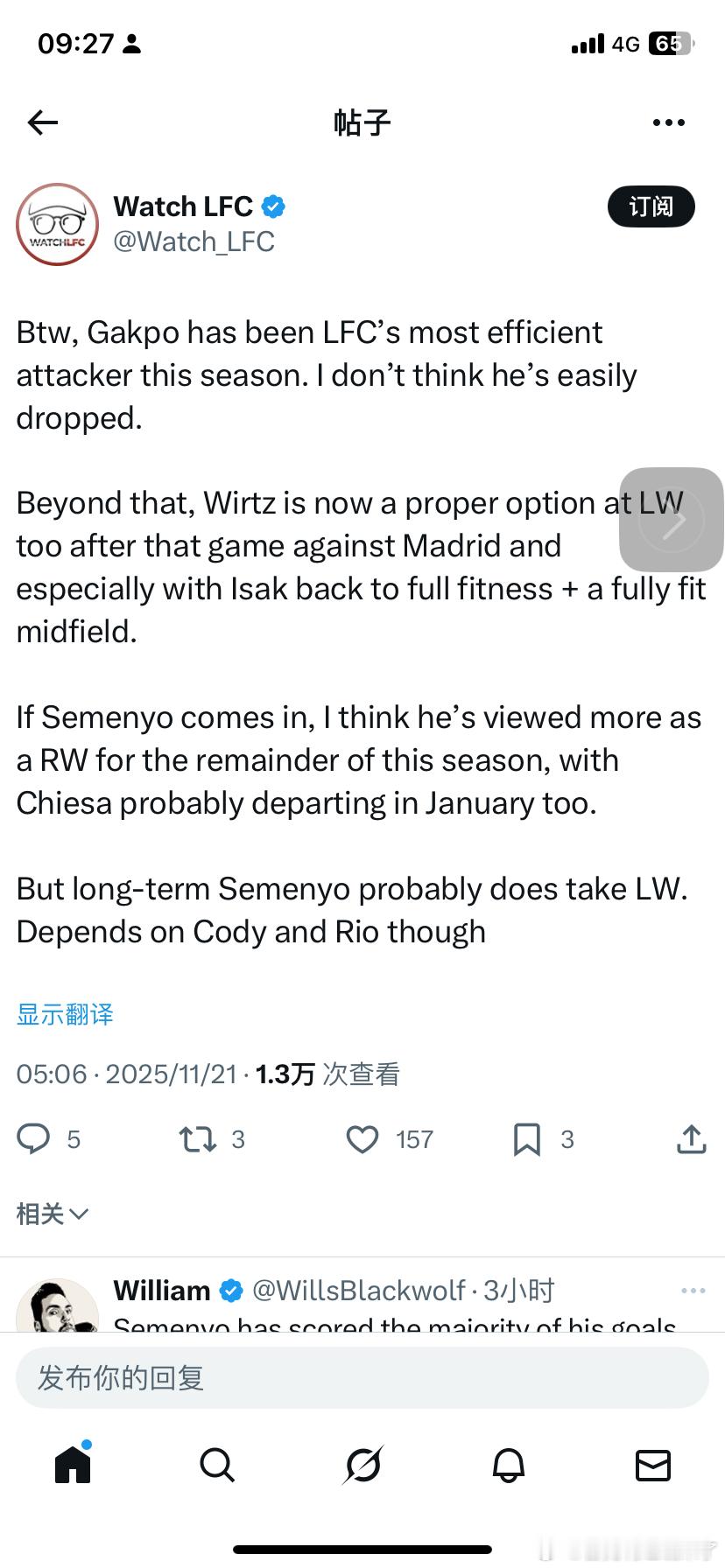 有推友评论不过从实际表现来看,加克波确实是本赛季利物浦锋线效率最稳定的攻击手,现阶段很难将他移出首发。更重要的是,在对阵皇马的比赛后,维尔茨现在也能胜任左翼位置,加上伊萨克已完全恢复状态且中场人员齐整。如果塞梅约加盟,我认为俱乐部更可能让他在本赛季剩余时间担任右翼——毕竟基耶萨很可能在一月离队。但长期来看,塞梅约最终应该会占据左路。当然这最终还要看加克波和恩古莫哈的后续发展。不过也有人说关于塞梅约应该是右路塞梅约的大部分进球都来自右翼位置。利物浦的整体战术风格倾向于通过右翼发动进攻。我们的大多数失球都是由于右路防守被撕裂所致。他很可能以右边锋球员的身份被引进。