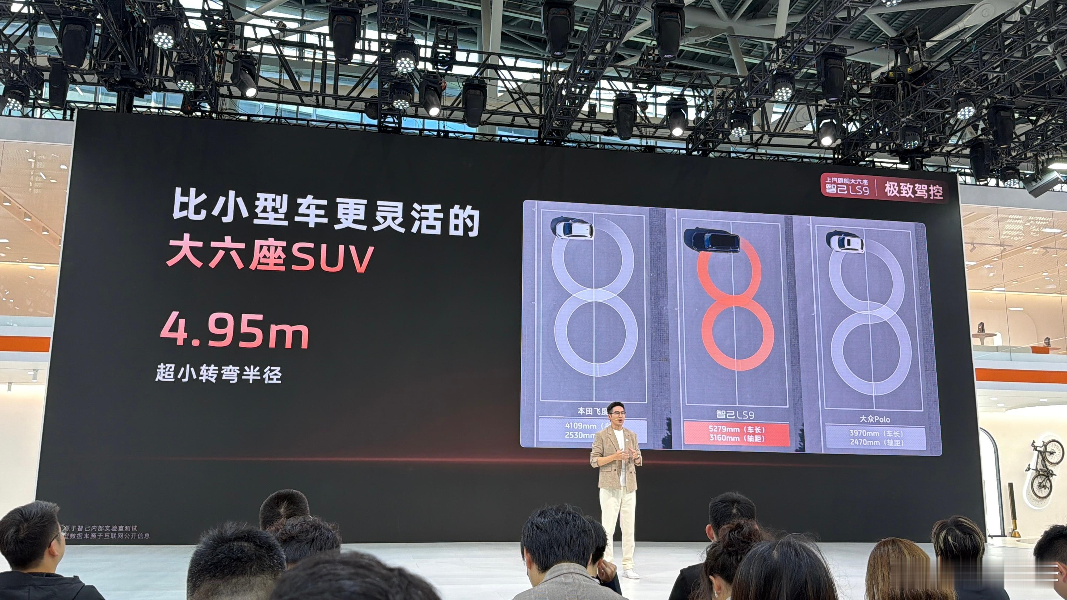 智己LS9作为最好开的大六座SUV灵蜥数字底盘和双向24度的后轮转向功不可没在这次的广州车展上 为了咱们老广朋友看得更直观除了发布会和大众Polo的转弯半径对比这次还增加了飞度无论是4米内还是4米外智己LS9这台车长接近5米3的大六座SUV都能和它们一样灵活,转弯半径只有4.95m,狭窄路口、魔鬼地库、狭窄车位轻松应对