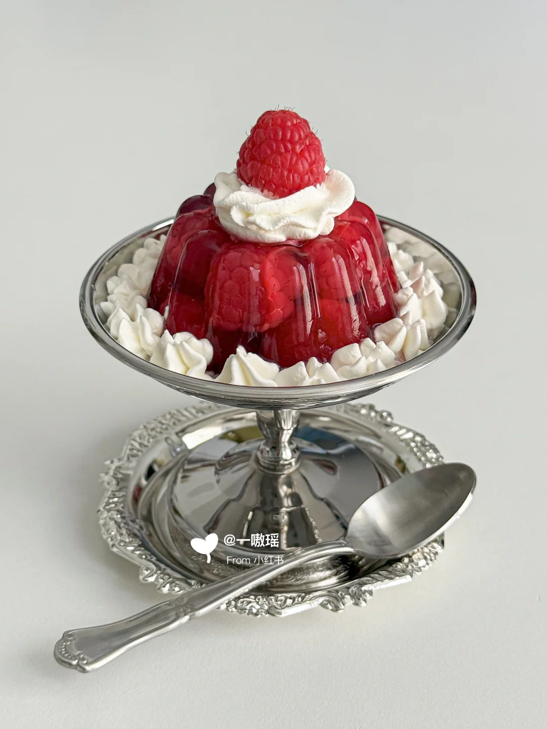 一直以为这小东西徒有其表,入口那一下有被打脸!🥹 树莓酸酸甜甜一口爆汁 ,果冻爽口Q弹,搭配奶呼呼的清甜奶油 不得不承认这个组合有点魔力🪄一口气炫光🤤 做法超级简单,有手就会‼️ - 🛒食材 水200g|莓果果汁50g|白凉粉15g|白砂糖5g|树莓适量 👩🏻🍳做法 ▫️水和莓果汁倒入锅中加热 ▫️加入白凉粉和糖搅匀,煮至边缘冒小泡 ▫️模具中放树莓,倒入果冻液 ▫️冰箱冷藏3小时,凝固后脱模,挤奶油装饰