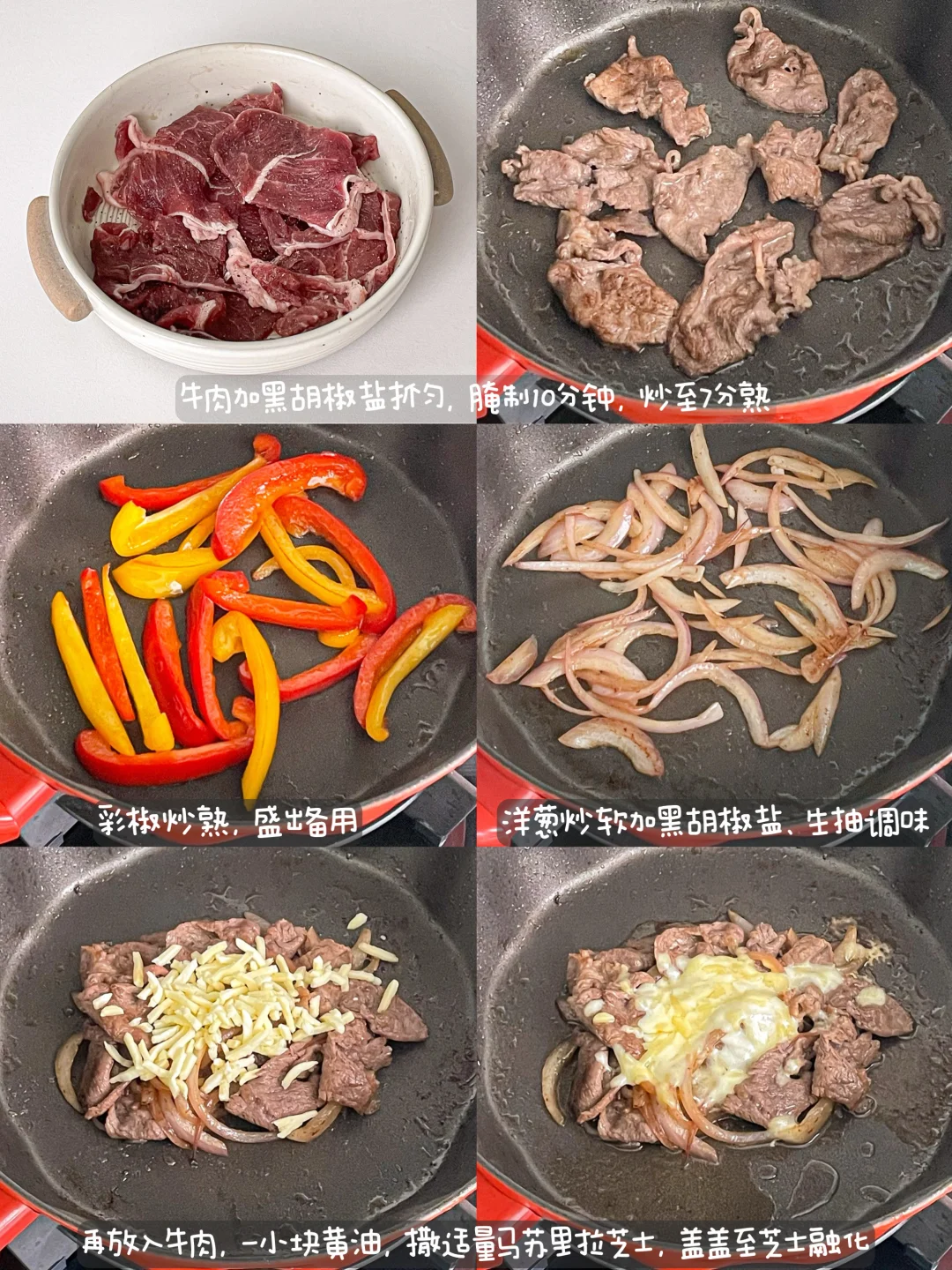 🥩牛肉鲜香、🧀芝士咸香,混合洋葱香🧅叠加彩椒