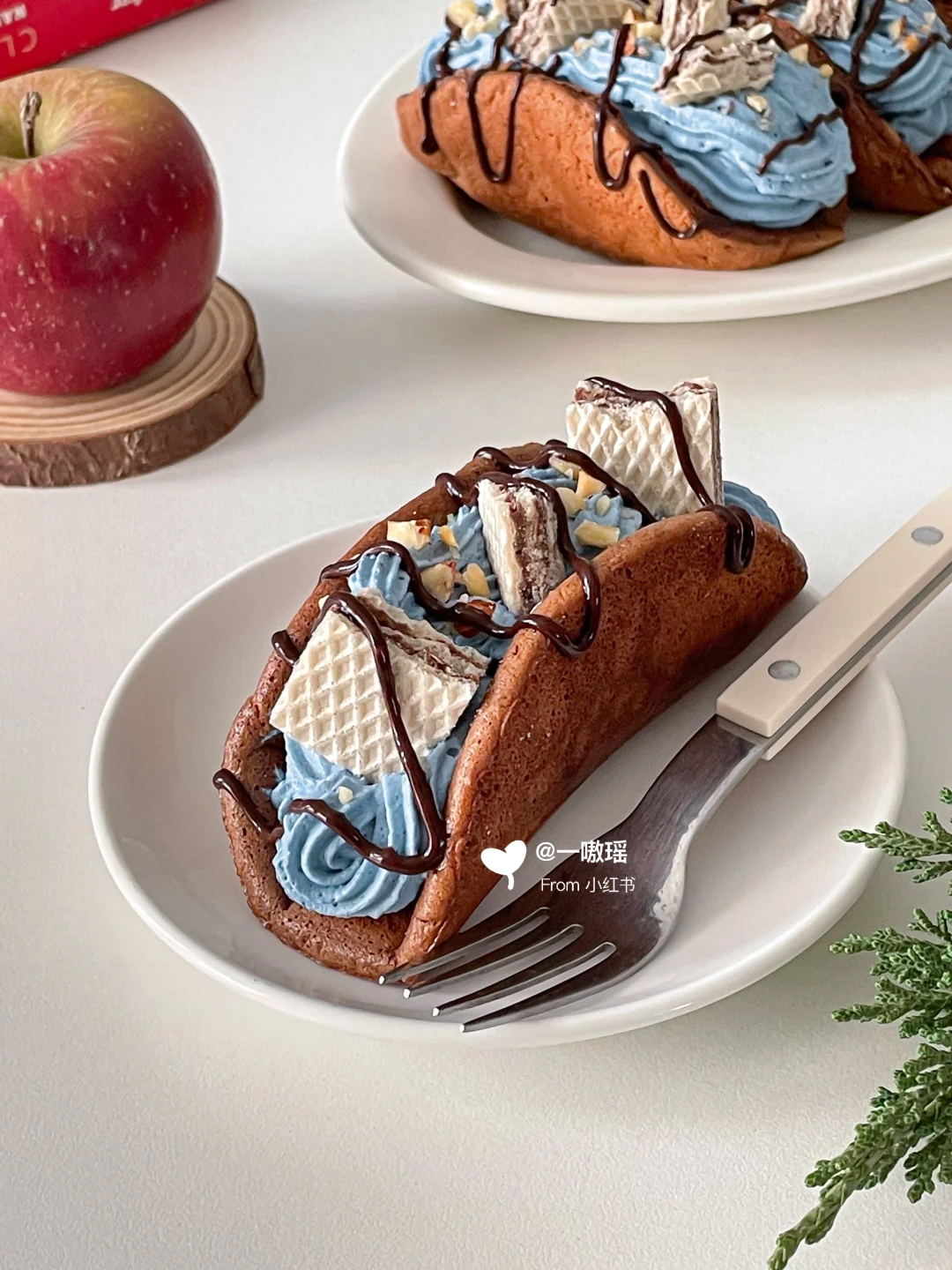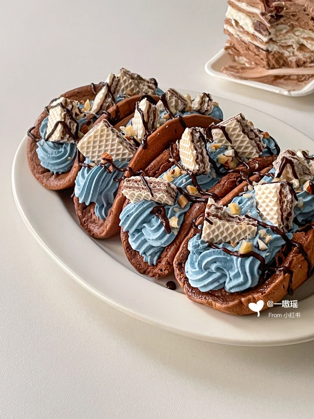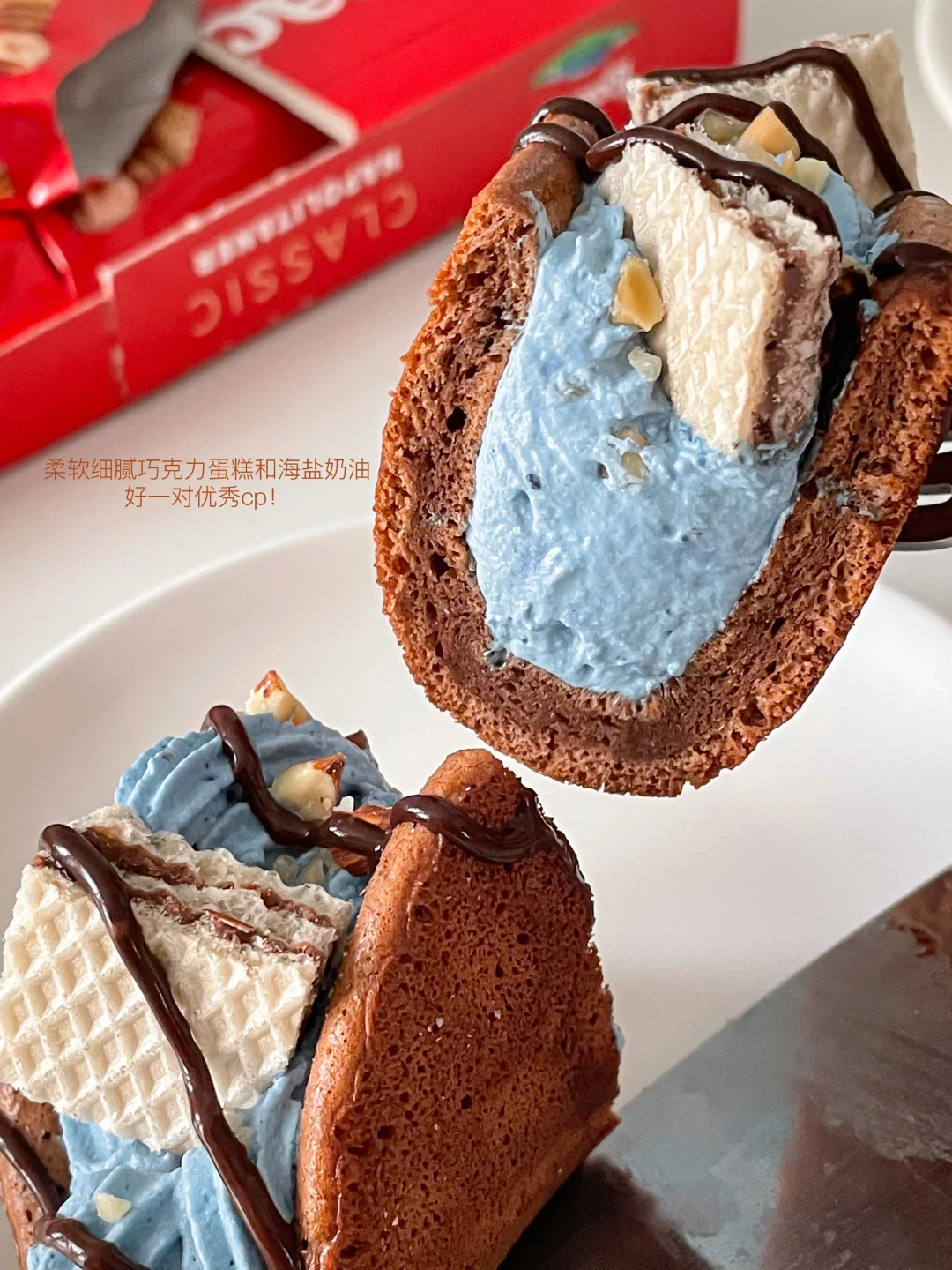 淡奶油150g|蝶豆花粉5g|糖10g|海盐1g|榛子威化饼干|坚果|巧克力酱