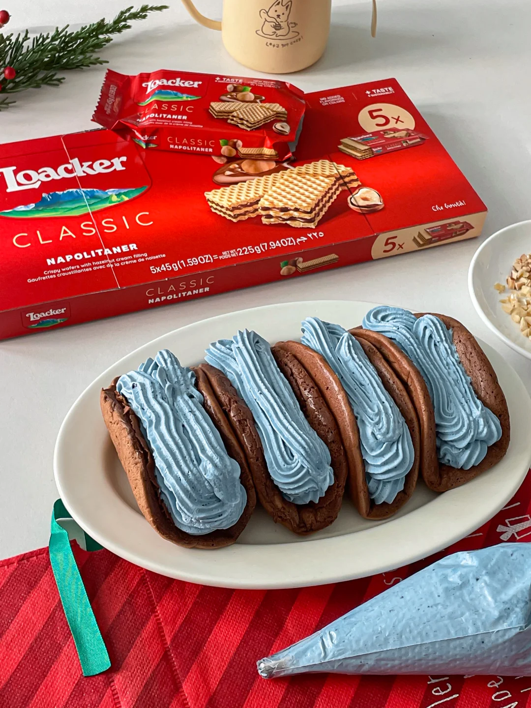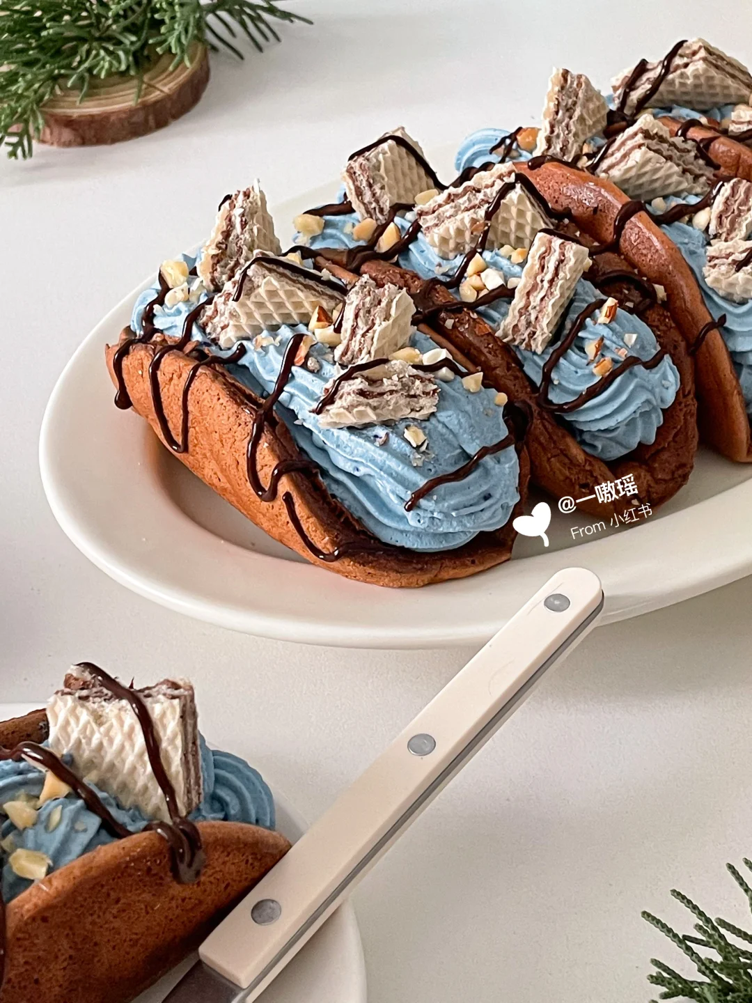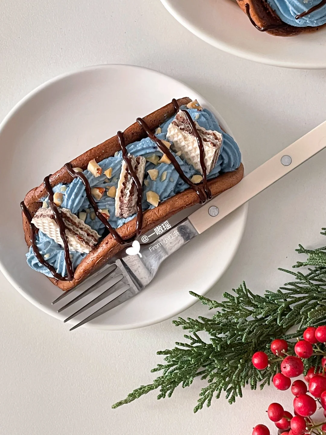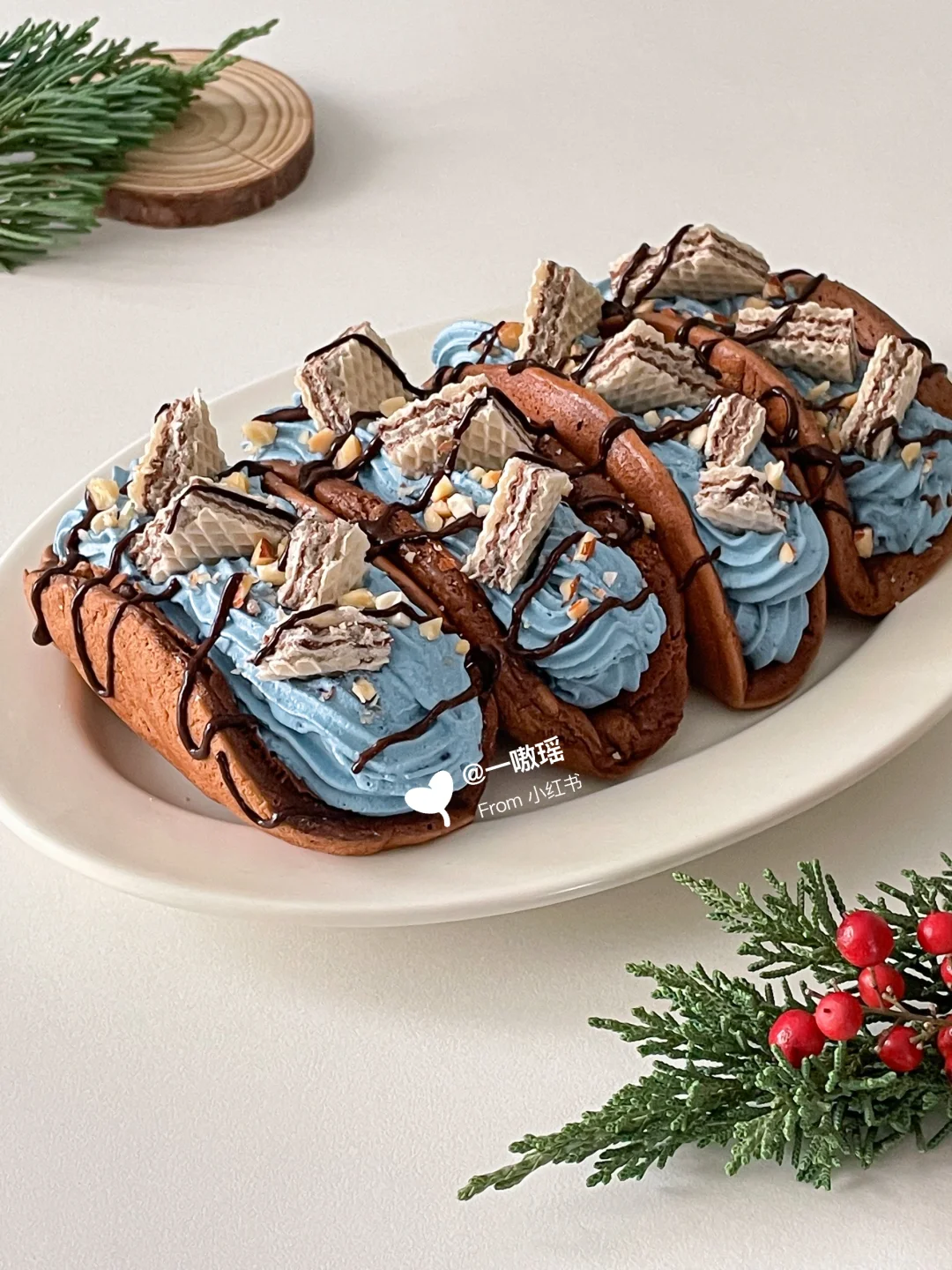 淡奶油150g|蝶豆花粉5g|糖10g|海盐1g|榛子威化饼干|坚果|巧克力酱