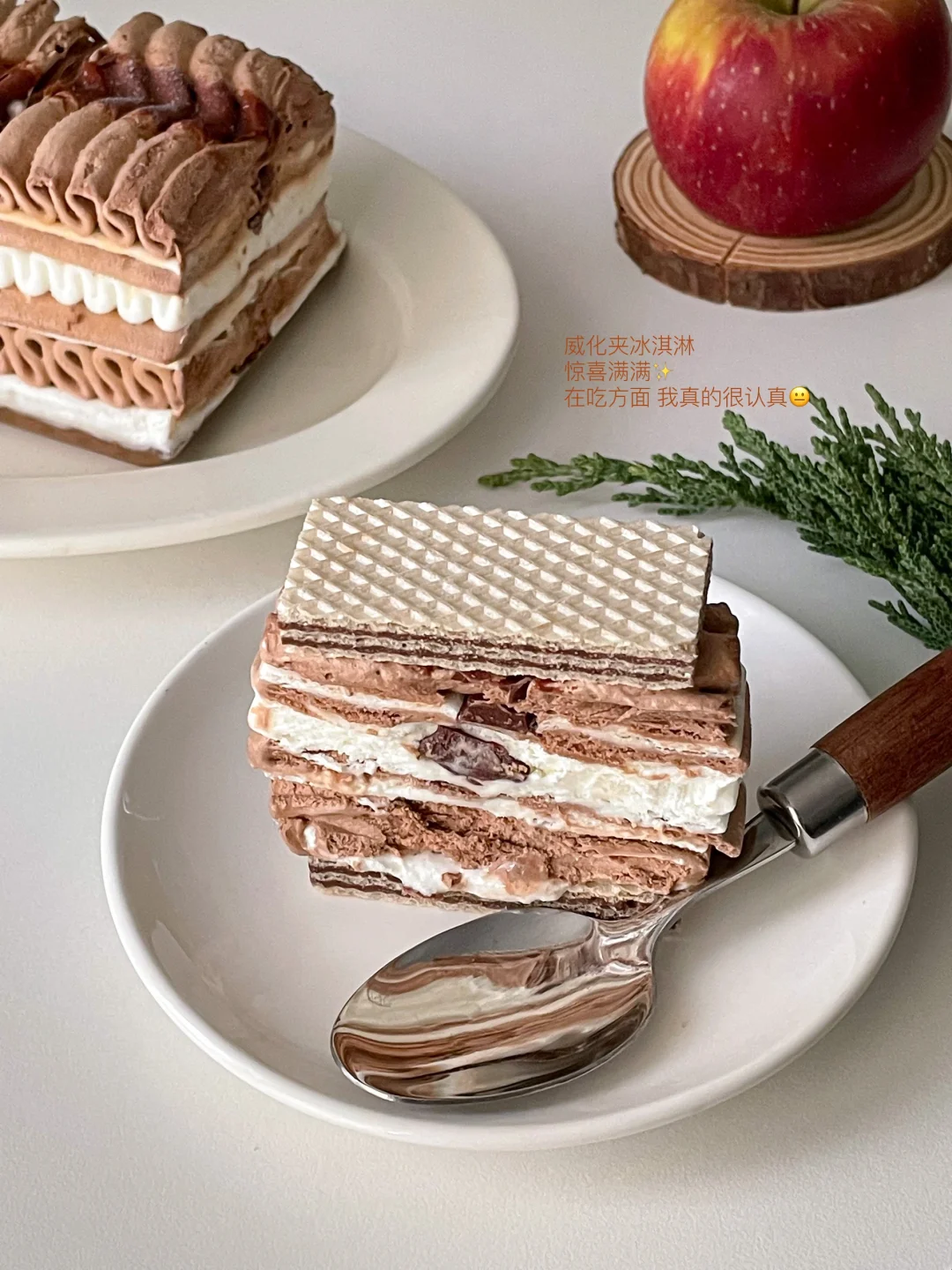 ▪️蛋糕中挤入奶油,放上榛子威化饼干