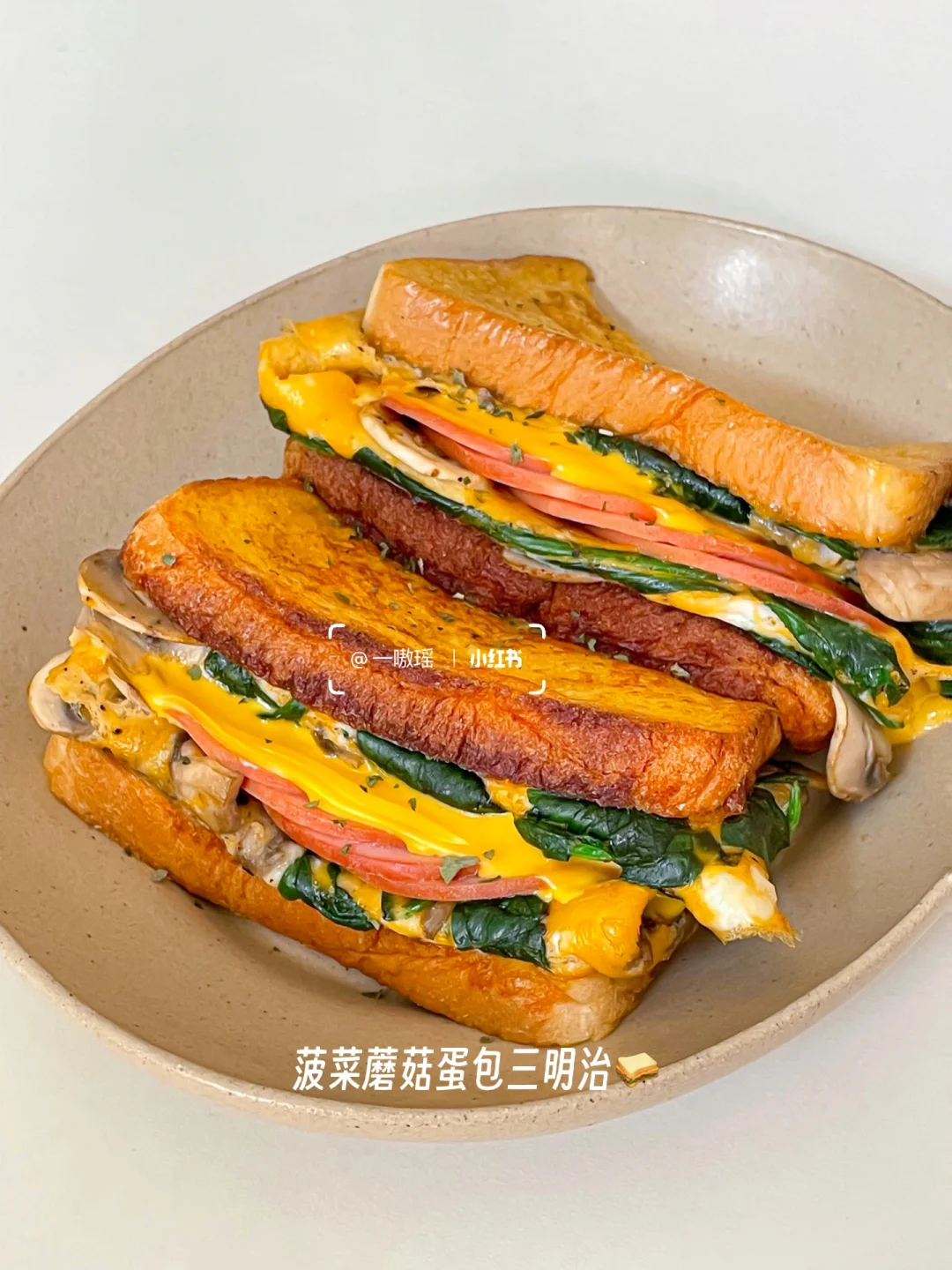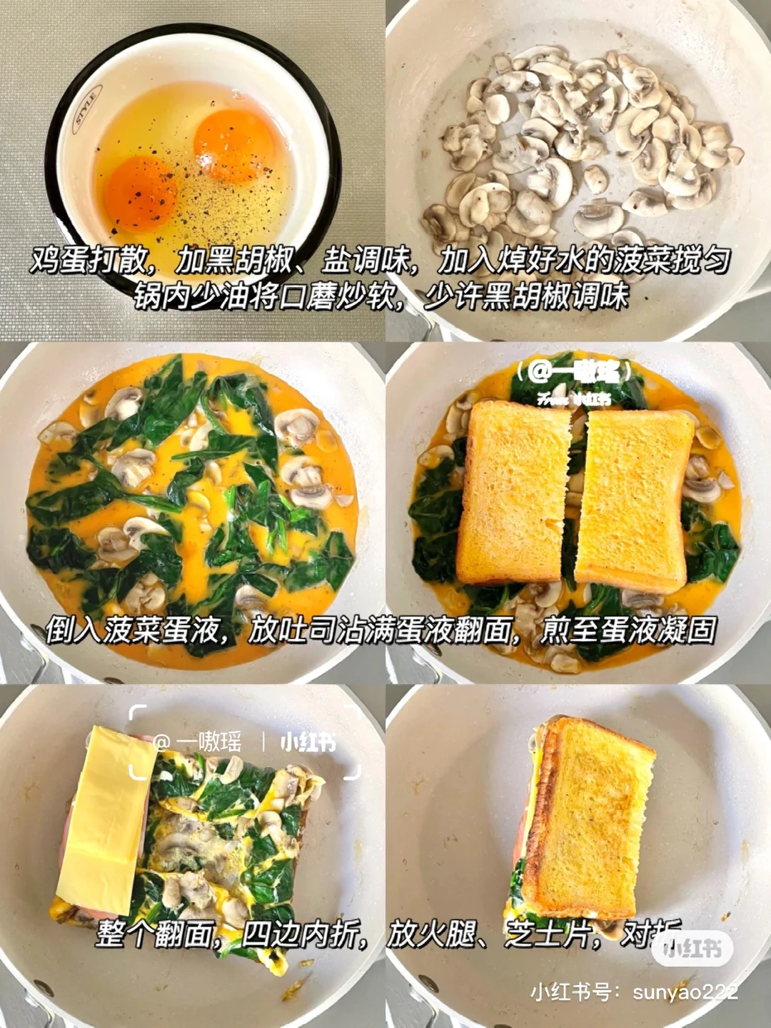 6⃣️菠菜蘑菇蛋包三明治🥪