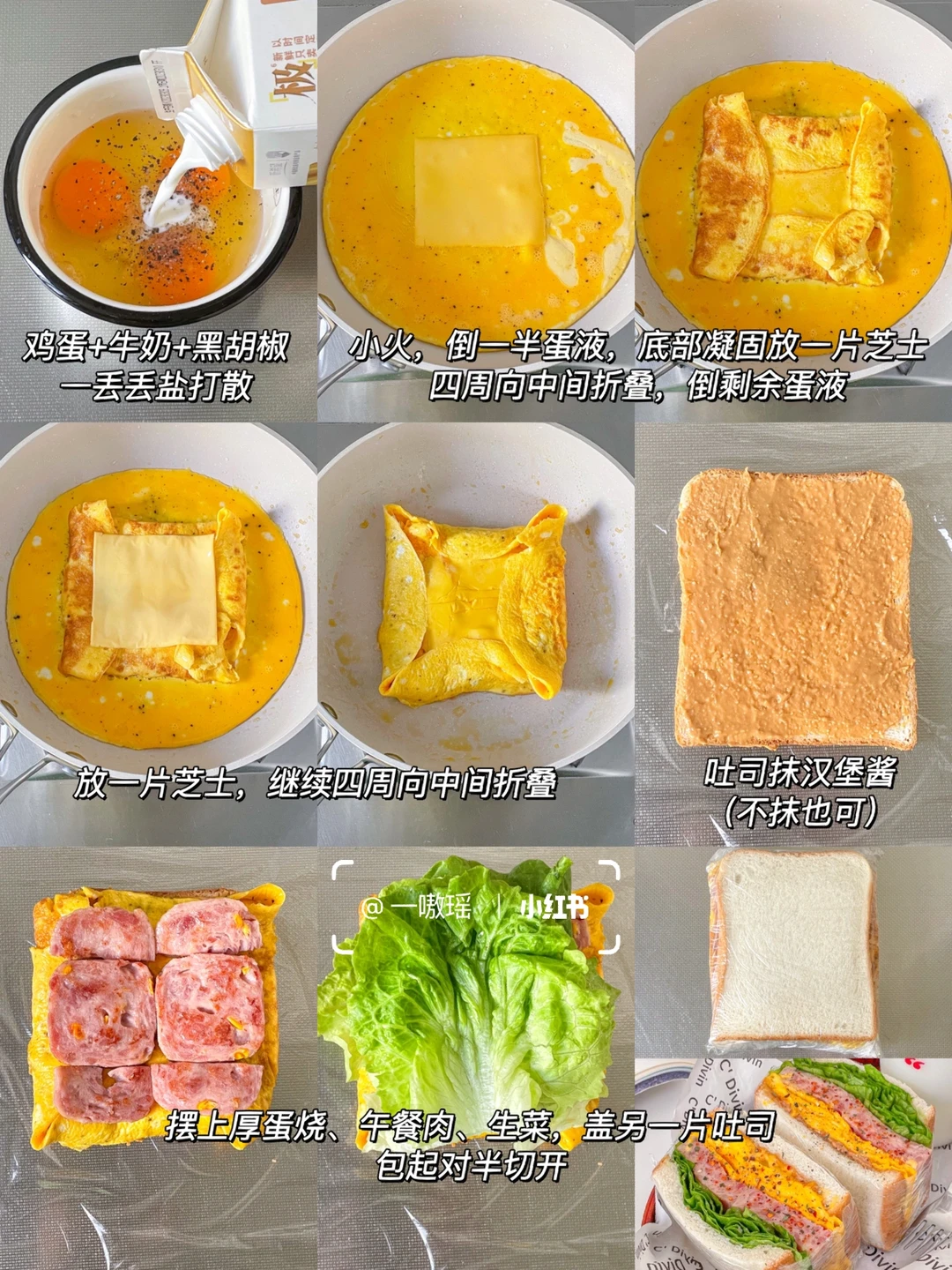 食材:吐司 鸡蛋 牛奶 午餐肉 芝士 生菜