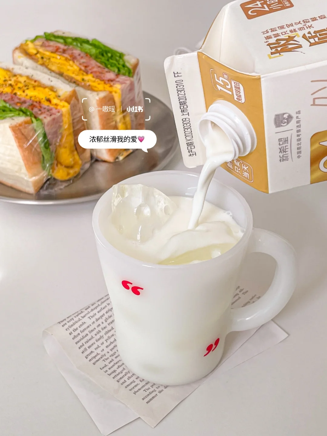🥪三明治很扎实,吃一半就饱啦!搭配一杯新希望乳业24小时黄金营养乳🥛/听说只卖上市当天,好奇买来尝尝。自然清甜,很香很纯正的牛乳,入口很舒服不粘腻,明天拿来做拿铁应该也很不错👌