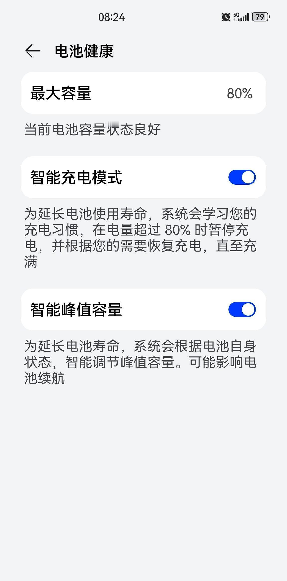 我用华为Mate40 Pro原装66W充电器充电,四年电池健康度降到80%。 用荣耀30W充电器充电一年,健康度仍是80%。 我认为快充和慢充对电池损耗有影响。 慢充电流小,电池发热少,能延缓电池老化。 这个快充方便点,而且快充四年能保持这样确实不错。 Mate40系列其实只支持40W,66W是硬上的。 这样发热大,充电时间也跟40W的一样。 你咋不用5V1A的充电器,那样你的手机可以用到坏。 网上那么多测评说明了,快充和慢充根本对电池没什么影响。 66瓦充电没问题,这也是厂家发的。电池健康度跟个人使用方式有关。
