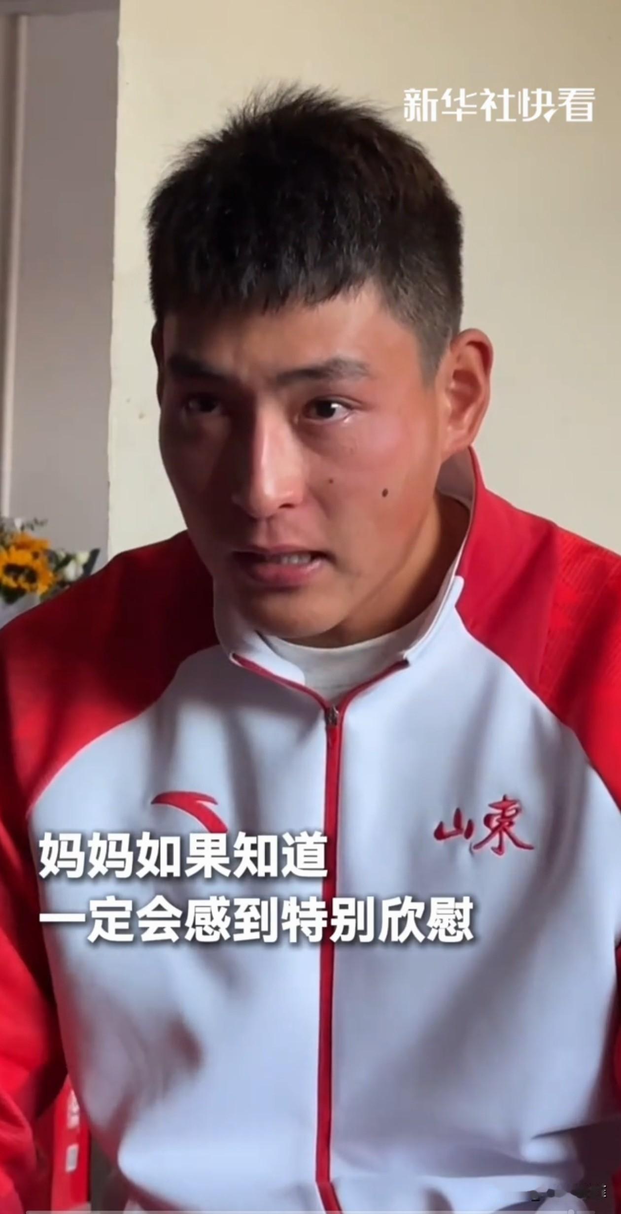 泪目了!山东,一小伙拼尽全力在全运会夺冠后,顾不上庆祝,而是直接带着金牌往家赶,
