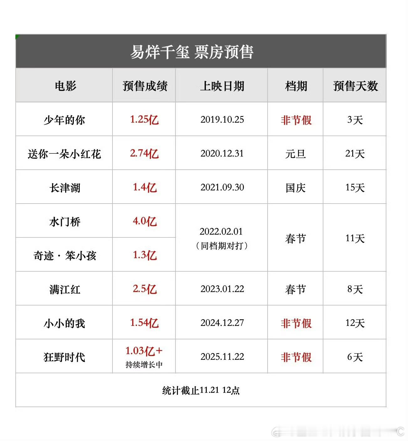 易烊千玺主演的所有电影上映前预售票房都破亿了破亿率百分百