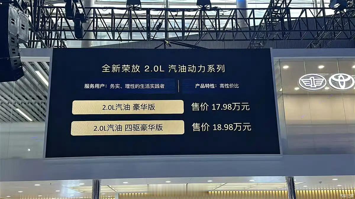 11月21日,一汽丰田第六代RAV4荣放正式上市。价格惊喜揭晓:丰田王牌智混荣放