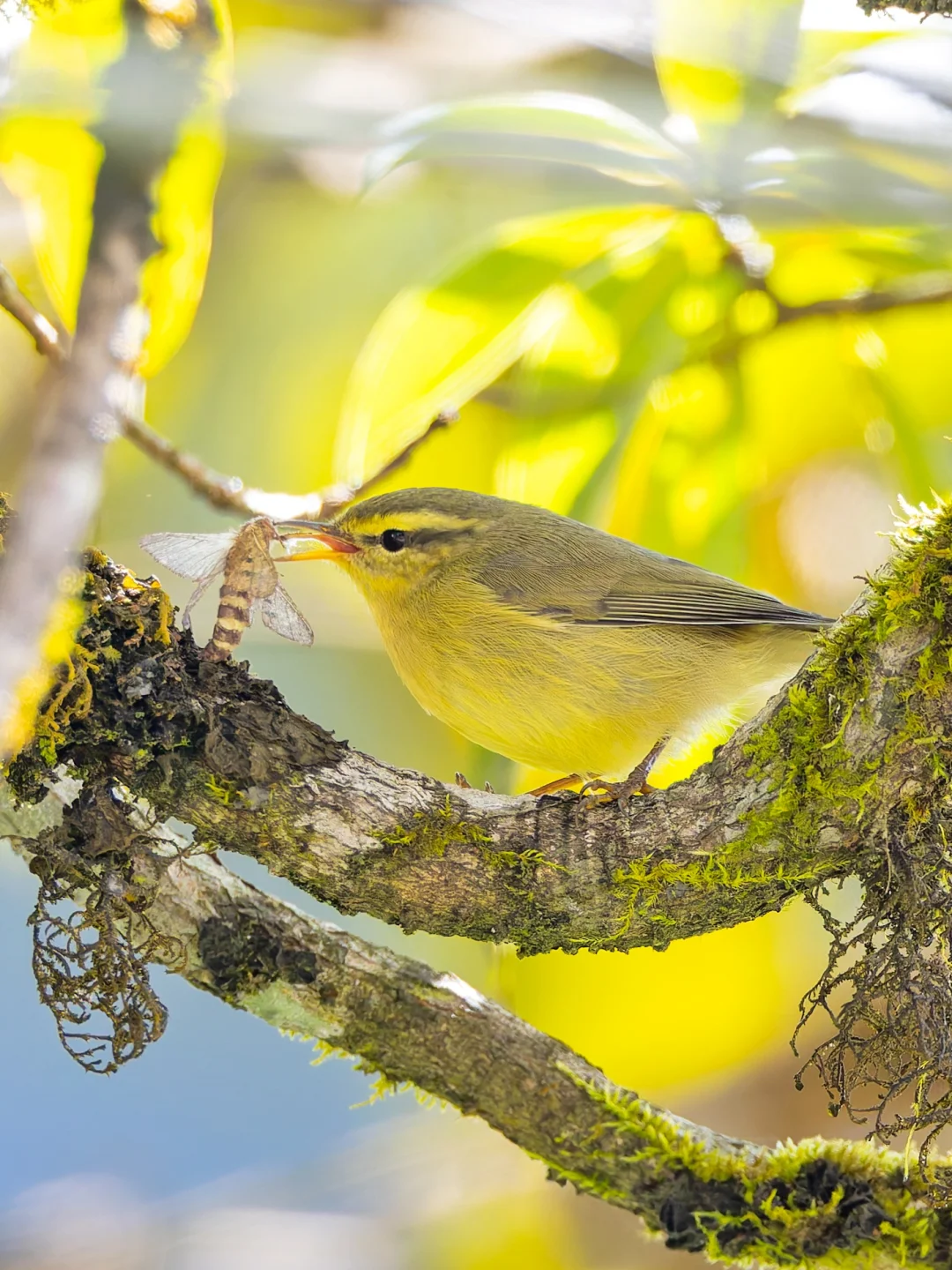 原创拍摄于2025.11 黄腹柳莺,Tickell's Leaf Warbler,雀形目柳莺科柳莺属。是一种分布在喜马拉雅山脉的柳莺,以及南亚次大陆,在我国需要一定海拔的地区能看到,它们常在高海拔地区繁殖,冬季垂直迁移到较低海拔。 黄腹柳莺上体橄榄棕色,下体黄色,没无翼带,是一种整个感觉黄黄的柳莺。 在林芝看到的第一只柳莺,没想到如此可爱。可能因为气温原因,它喜欢让羽毛蓬松,缩成球状,更加可爱啦。