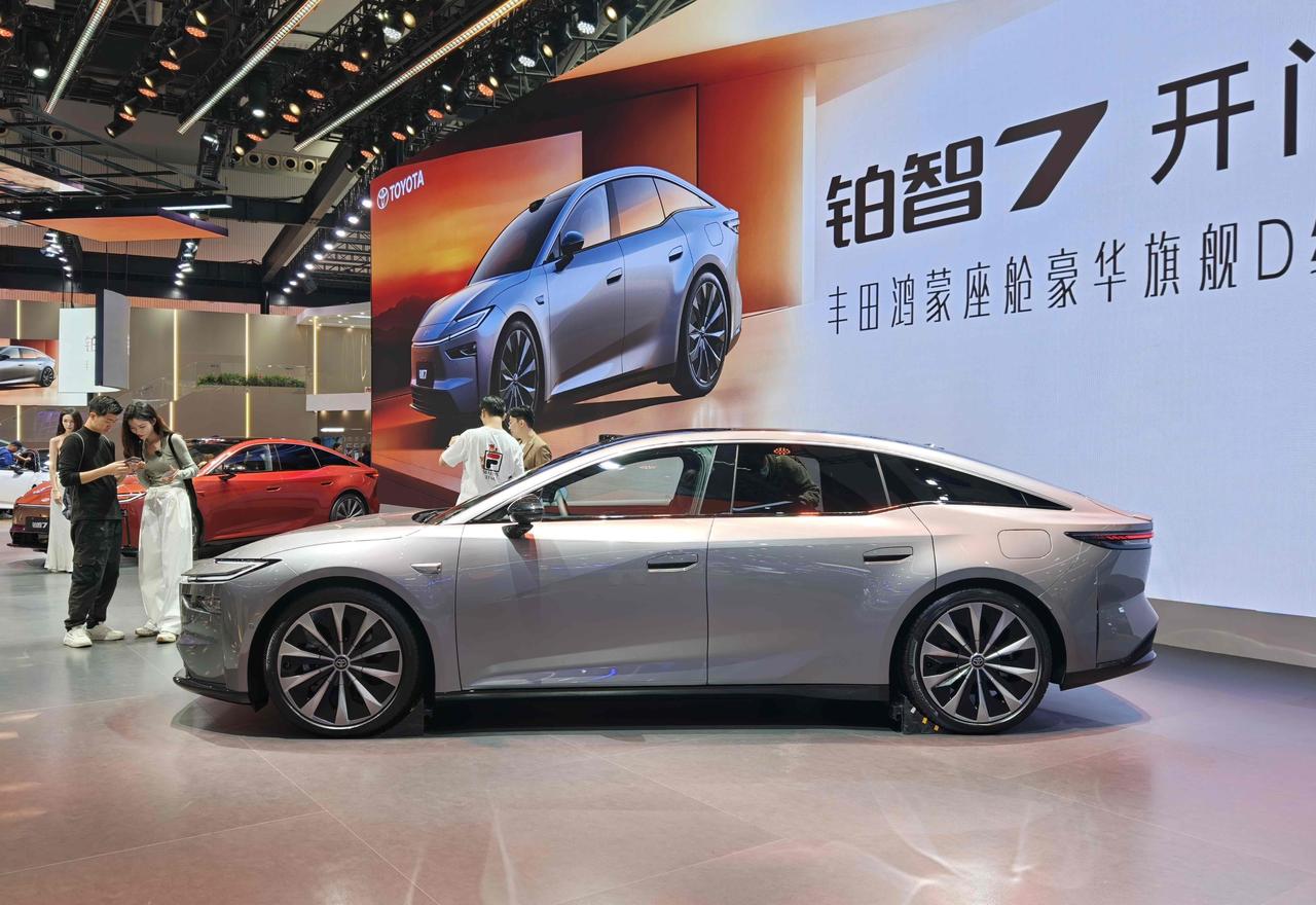 2025广州车展上,广汽丰田的旗舰D级纯电轿车铂智7闪亮登场还开启预订了,官方扬