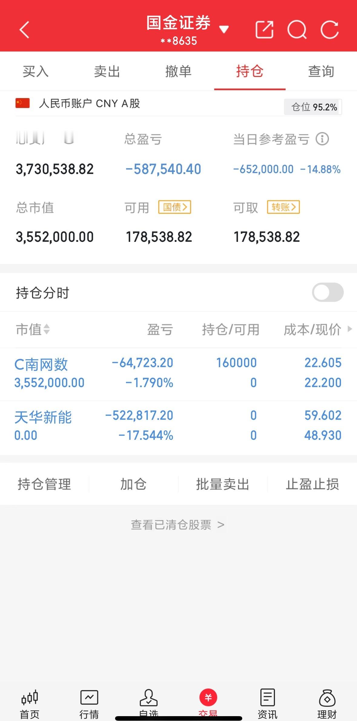 200w本金,目标1年做到1000w,1年翻五倍,欢迎各位关注验证!(第96天)今天买入:南网今天卖出:天华继续持有:感谢大家的支持与互动,点赞富一生,评论666股市一路长虹特别声明:这只是我个人的操作记录,不作为任何投资建议,更不是劝你们跟买! 股市有风险,投资需谨慎!