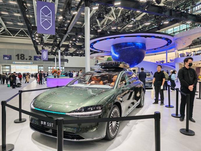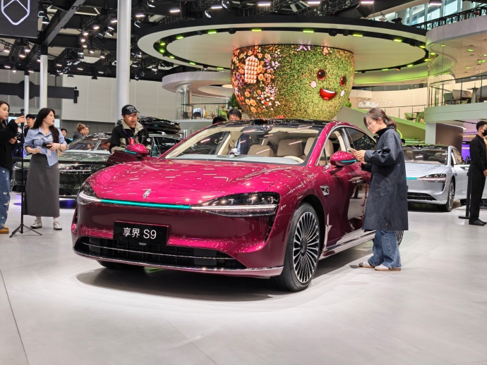 第二站鸿蒙智行展台 又是五界齐聚的壮观场景,而且是携鸿蒙智行全系销量突破100万辆的劲头来的,享界、智界、尚界、问界、尊界携旗下全部车型亮相,很多热门车型放了好几款颜色配置,不过我最关心的还是昨天更新的享界S9,实车如果是我的话第一推荐是红色,配白内,确实是很雅很高级,第二推荐是银色,这个配色更贵气一点,尤其是夏天开出去,我已经能想象路人被亮的晃眼的感觉了,辨识度拉满。这次其实配置增加挺多的,底盘悬架、电控啊、电动门啊,包括中控增加的副屏,整体来说属于加量又减价,真的挺香。然后全新问界M7,我自己是车主就不说了,你唯一要考虑的就是颜色喜欢哪个,几乎没有缺点,包括M9新配色、尊界S800也都是明星产品,周末没事大家可以来看看