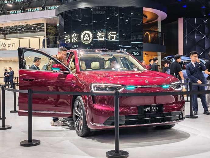 第二站鸿蒙智行展台 又是五界齐聚的壮观场景,而且是携鸿蒙智行全系销量突破100万