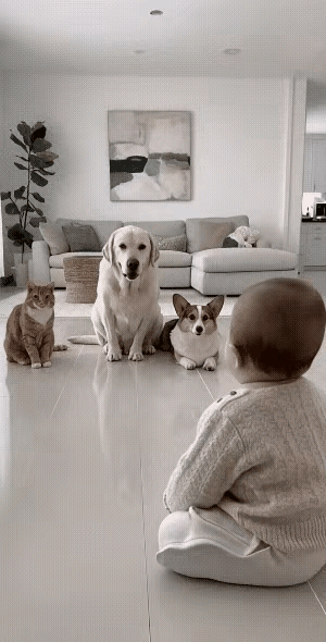 还是大橘懂事儿,在关键时刻顾全大局,懂得人情世故,不仅自己倒下的及时,还快速扑倒身旁傻愣愣的狗狗,用身体压住倒下的狗狗,博得小主人开心一笑。 小主人坐在大橘、拉布拉多和柯基面前,用手一指,柯基和大橘应声倒下,大橘表现的最精彩,还就地翻滚做痛苦状。 可是拉布拉多不解风情,还在傻愣愣的坐着,大橘一看立即起身扑倒拉布拉多,并用身体压住拉布拉多,怕它不懂事的坐起来。 小主人一看面前的三个家伙被自己一伸指头就都撩倒了,高兴的开怀大笑。