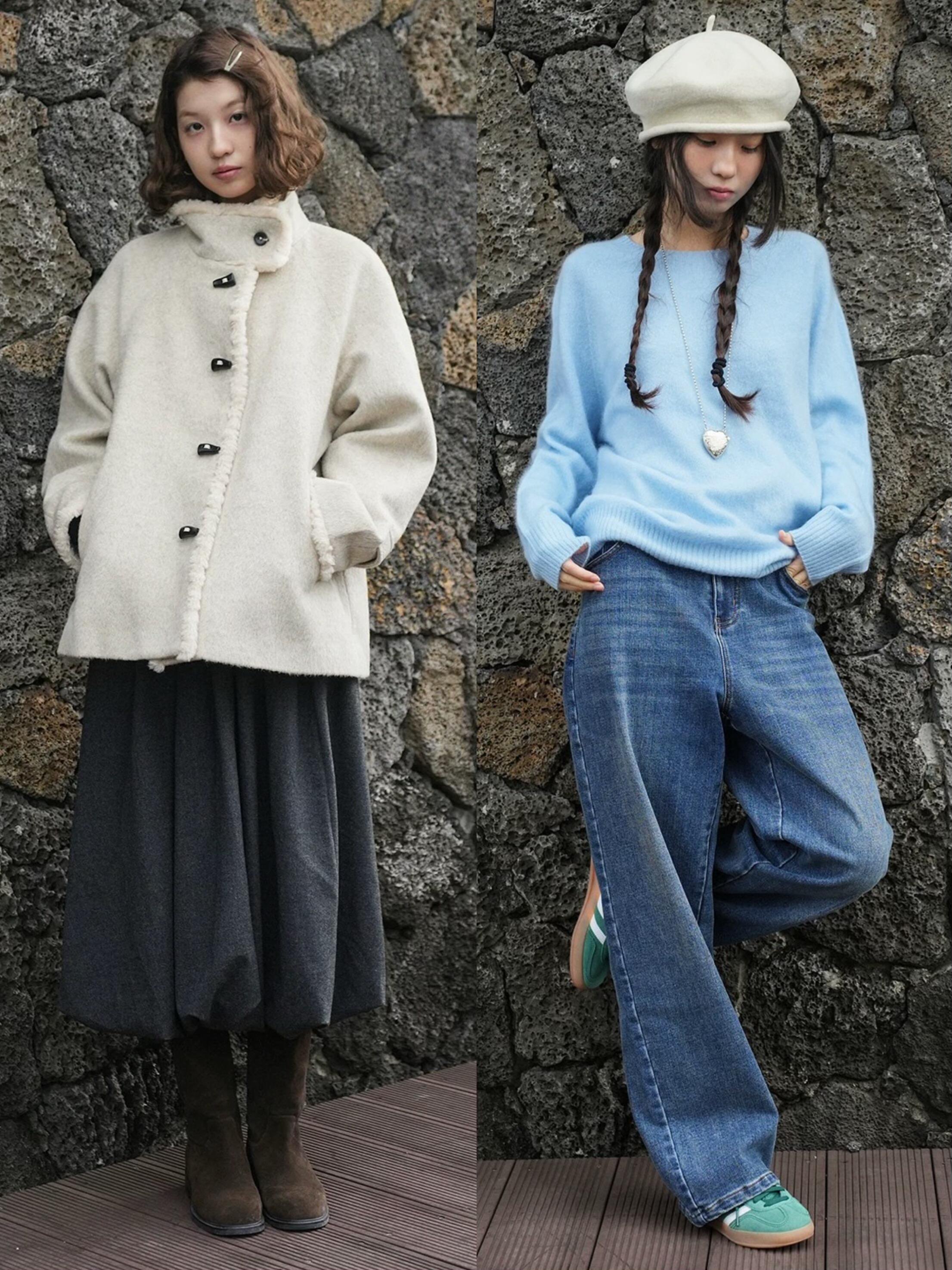 韩系少女感穿搭灵感! 以治愈的低保和度彩色增加清新温柔的氛围, 流畅的剪裁线条,巧妙平衡慵懒休闲与精致格调。细节处点缀少女风的甜美元素,为整体造型注入一抹灵动生机, 温柔、舒服,还带着点漫不经心的时髦感!
