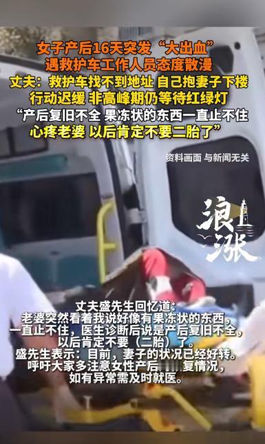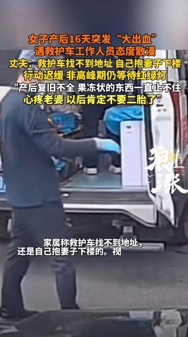 “严查到底!”11月18日,广东深圳,一女子在家突然大出血,老公焦急的叫了救护车,不料,对方却表示找不到地方,男子只能抱着妻子到小区门口等,没想到,赶来的护士却十分散漫,站在一旁无动于衷!网友:这是拿生命当儿戏。 2025年 11 月 18 日深圳某小区门口,周女士丈夫抱着流血的妻子发抖。 救护车到了,护士却站在一旁不伸手,这几分钟成了全家的噩梦。 没人想到,这场 “生死等待” 后来会推动当地急救流程的整改。 如今再提这事,王先生仍会攥紧拳头:“差一点就永远失去她。” 事发当天,周女士产后 16 天在家突然大出血,床单瞬间染红。 王先生拨通急救电话时,声音抖得几乎说不完整句话。 “产后大出血!地址是 XX 小区,快来!” 他对着听筒喊了三遍。 挂了电话,他抱起妻子就往楼下跑,楼道里的血滴了一路。 跑到小区门口,冷风灌进衣领,王先生却出了一身冷汗。 他把妻子护在怀里,不停搓她的手:“别睡,救护车快到了。” 周女士眼皮越来越沉,嘴里断断续续说着 “疼”,血还在渗。 他抬头望向来路,每一秒都像在熬一个世纪。 终于听到救护车鸣笛,王先生激动得差点跪下去。 可车停稳后,只有一名护士慢慢下来,双手插在白大褂口袋里。 “快!帮我扶一下,她快撑不住了!” 王先生冲上去想搭手。 护士却往后退了一步:“等医生来,我一个人处理不了。” 王先生看着护士掏出手机刷了两下,又放回口袋。 妻子的头靠在他肩上,呼吸越来越弱,身体开始发凉。 “哪怕先帮她按住止血也行啊!” 他带着哭腔哀求,声音都哑了。 护士没动,只是说:“急也没用,按流程来。” 直到十分钟后,载着医生的第二辆车赶到,才有人上前急救。 医生剪开周女士的衣服,快速缠上止血带,测血压时眉头紧锁。 “再晚几分钟就休克了!” 医生的话让王先生腿一软。 周女士被抬上救护车时,他扶着车门,手还在不停抖。 经过三小时抢救,周女士终于脱离危险,转入普通病房。 醒来后第一句话,她问的是:“当时护士为什么不帮我?”王先生坐在床边,握着她的手,眼泪掉在被子上:“都过去了。” 可他心里清楚,有些东西再也回不到从前了。 第二天,王先生就去急救中心提交了投诉,要求调查。 工作人员起初说 “会核实”,可过了三天都没动静。 他把事情经过写成文字,配上妻子的诊断证明,发到了网上。 没想到帖子很快火了,评论区瞬间炸了锅。 有网友晒出类似经历:“上次我爸心梗,护士也让等医生。” 也有医护人员留言:“就算一个人,也该先做基础急救,这是常识。” 当地卫健委很快注意到这事,回应 “会严肃核查,绝不姑息”。 医院也成立了调查组,调取了救护车的行车记录仪和通话记录。 周女士出院后,夫妻俩做了个决定:不再要二胎。 “不是不想,是不敢。” 王先生说,“我再也承受不起一次风险。” 他们把家里的婴儿床收了起来,周女士也辞掉了工作,专心休养。 小区门口那段路,他们至今还绕着走,怕看到熟悉的场景想起往事。 如今周女士的身体慢慢恢复,能做些简单家务。 王先生每天下班第一件事,就是回家给她熬补血的汤。 有时看到救护车路过,周女士还是会下意识攥紧衣服。 王先生会握住她的手:“现在不一样了,流程改了。” 这场意外,让夫妻俩对 “生命” 有了更深的理解。 王先生说:“以前觉得急救是理所当然的及时,现在才知道不是。” 他也希望自己的经历能提醒更多人:“遇到不合理的事,要敢站出来。” 毕竟,每个生命都值得被认真对待,不该被 “按流程” 耽误。 信息来源:《男子妻子产后16天突然大出血,救护车称找不到地址,自己抱妻子下楼,记录仪显示救援人员态度散漫,视频发出后,当晚院领导主动上门道歉》法治进行时
