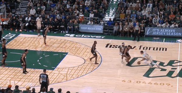 雄鹿观察:罗林斯生涯第4季全面爆发,对阵费城32分14助6板罗林斯在生涯第4个赛季迎来全面爆发,本赛季一直担任雄鹿第二号得分手的角色。而在今天雄鹿对阵76人的比赛中,罗林斯在字母伤缺的情况下接过了头号得分手的重任,砍下32分14助攻6篮板1抢断的全面数据。打出了本赛季继对阵勇士32+8+3后又一代表作。图1VJ采取堵罗林斯左侧的防守站位,将罗林斯往边线驱赶,于是罗林斯顺势走右路突破,合球后对抗抗开VJ进一步获取身位优势,随后抛投躲避内线庄神的护框。图2上线操刀'Double Drag“,格林早早的”幽灵掩护“拆走,罗林斯直接左路突破摆脱追分的爱德华兹直杀篮下,躲过VJ的协防后侧身起跳上篮打进。图3边线球回合,无球起手执行“鹰式切入”(Hawk Cut)切至篮下,接球炸球、虚晃后抓时间差上篮打进。图4早期进攻借助特纳的“Drag”掩护突破,面对先沉退后换防的巴洛炸球后背运拉回衔接撤步跳投。图5LOGO位置借助哈里斯设置的背掩护启动左路突破直杀篮下,迎着篮下协防的巴洛起跳后拉杆右手反蓝打进。图6第四节关键时刻,借助格林“幽灵掩护”起手单打马克西,胯下衔接背运拉回后佯装左路突破,实则炸球后迅速变向直接走右路攻击马克西前脚直杀篮下,躲过巴洛协防后起跳迎着追防的马克西上篮打进。图7格莱姆斯拿到球后罗林斯迅速上前夹击,其出球后再迅速归位配合特伦特夹击弧顶拿球的马克西,合力抢断后直接推动一条龙快攻。图8持球刚过半场就直接借助波蒂斯十分扎实的“Drag掩护”挂住马克西,行进间躲过格莱姆斯的刷卡后炸球急停中投,惩罚巴洛的沉退,114-116加时赛命中关键进球。除了个人主攻之外,罗林斯本赛季在传控方面的进步同样不可忽视。罗林斯此前生涯并不以组织能力见长,但本赛季每36分钟6.7次助攻和2.35的助失比均是生涯新高。本场之前也有4场比赛单场送出8次助攻,今天对阵76人的比赛更是送出了14记助攻,创下了生涯纪录,图9、10、11、12。