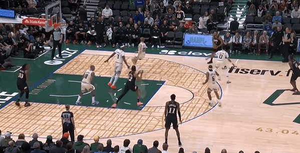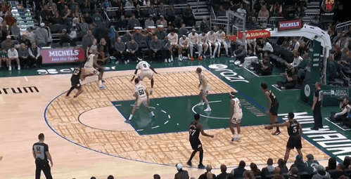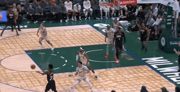 76人观察:马克西54分生涯之夜,鏖战加时率队取胜作为现如今费城毫无疑问的大当家,马克西延续着开赛以来火爆的竞技状态:在今天对阵雄鹿的比赛中出战46分钟狂砍54分9助攻5篮板3抢断3盖帽,成为了东部联盟首位砍下50+的球员。本场比赛马克西打出了自己生涯最佳单场表现的同时,还率队鏖战加时战胜雄鹿。图1非常经典的“西班牙挡拆”(Stack)战术配合:沃克的掩护帮助马克西延阻罗林斯抢出身位优势,爱德华兹扎实的背掩护阻止特纳回退禁区护框,马克西左路突破挑篮命中。图2持球推动转换背运将安东尼防守重心进一步向右侧调度,随后迅速衔接变向走左路突破攻框得手。这是鲍威尔转换时的招牌技,一般来说鲍威尔会在连续小跳步的同时快速使用背运衔接胯下然后干拔三分。图3和沃特福德边路的手递手配合,面对雄鹿的“ice”防守马克西直接趁罗林斯没追上来时加速过掉特纳,随后迎着库兹马的回收协防“欧洲步”上篮打进2+1。图4雄鹿联防,马克西三分线外两步接球拔起就射,完全不讲理。图5挡拆行进间走Z字形佯装观察顺下中锋和弱侧的情况,实则直接不看人传球找到强侧底角的乔治,这个传球又快又准,像“子弹”一样直接飞到了乔治手中,再加上之前的眼神误导,快到库兹马第一时间都没有反应过来。图6第一波进攻开发不力后立即将球回给沃特福德中转,随后衔接手递手发起第二波进攻,吸引弱侧45°安东尼回收后迅速回给接应的VJ。图7弱侧接应见哈里斯从自身左侧前来扑防,接球后立即借助底线的空间启动右路突破,见波蒂斯前来协防先是使用欧洲步调度防守重心,随后利用底线的空间钻到篮下后反篮躲避协防。图8推过半场佯装左路突破随后立即炸球变换重心,撩起手臂合球起步,迎着篮下的罗林斯滞空上篮打进2+1,在关键时刻伊始便帮助球队把比分优势扩大到6分。图9见到AJ格林从左侧前来扑防,立即右路突破摆脱,随后一记高抛投躲避篮下护框的特纳,命中关键进球。