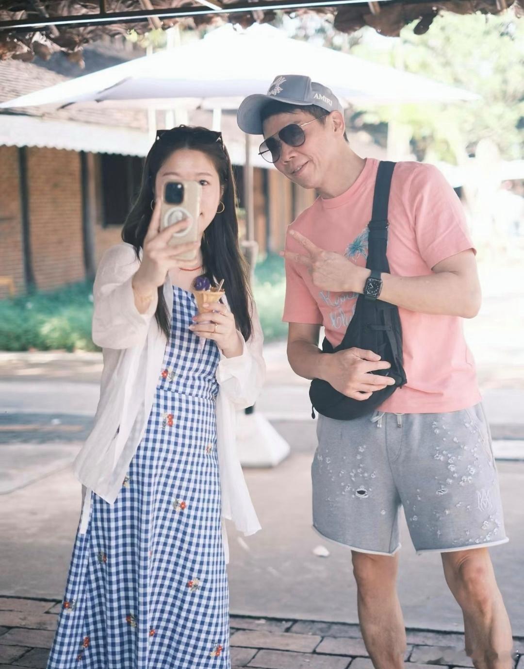 56岁陶喆和家人在泰国清迈旅游,他的穿衣打扮清爽时尚,身材很瘦,脸看起来有点奇怪,姨化好严重!