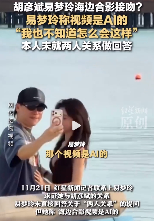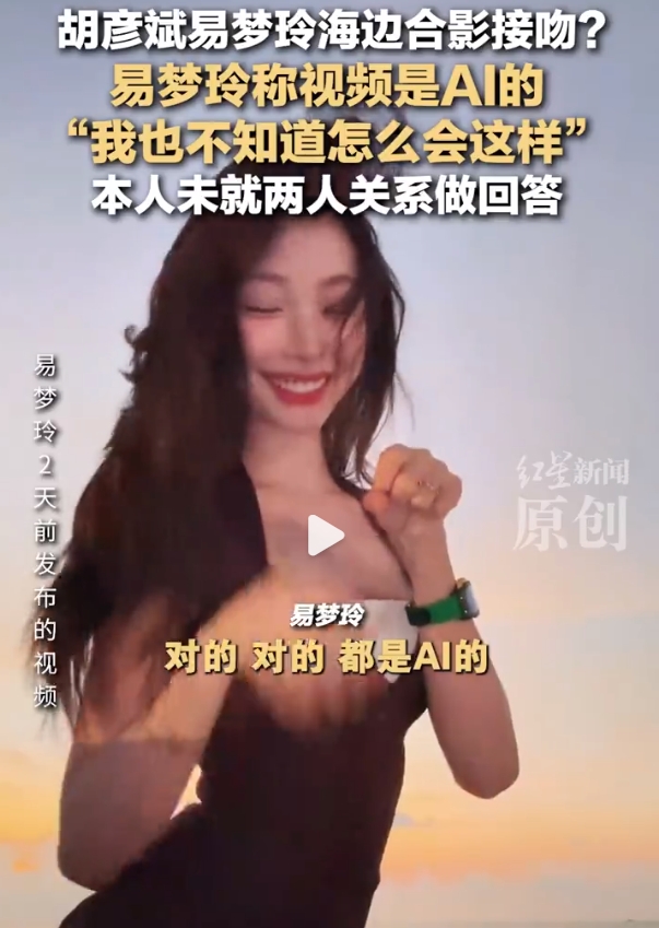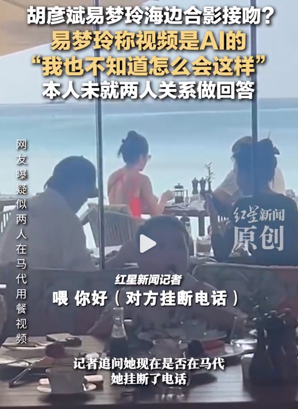 有记者拨通电话询问易梦玲恋情传闻,易梦玲居然表示网上所有的海边视频都是AI合成的,自己也不知道怎么会这样,好好笑哦!