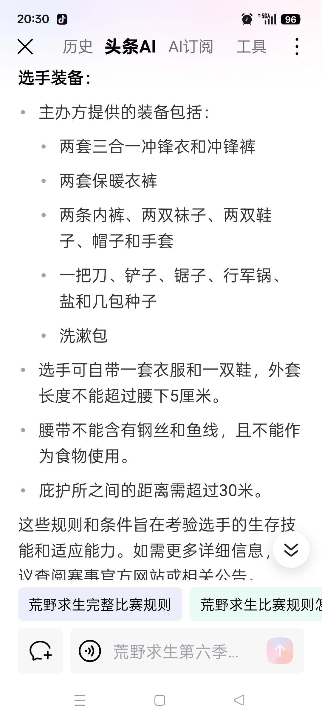 《荒野求生》节目组这波操作背后一定有高人指点! 选手们不仅可以穿保暖内衣,还有统一配备的冲锋衣。 考虑到天气比较冷,还准备了帽子,手套。 甚至选手们还可以自己再准备一套衣服,鞋子,闹着玩呢? 你以为这些就够了吗? 没想到,节目组还给准备了锅,铲子,锯子,盐,连蔬菜的种子都发了几包。 也难怪很多人吐槽,按节目组这个想法,估计过年的时候,这些选手还得继续坐在一起,看看怎么继续调整。 个人感觉,接下来尽快退赛的选手才是明智的,没必要这么玩下去,真的是遥遥无期了[笑哭][笑哭]